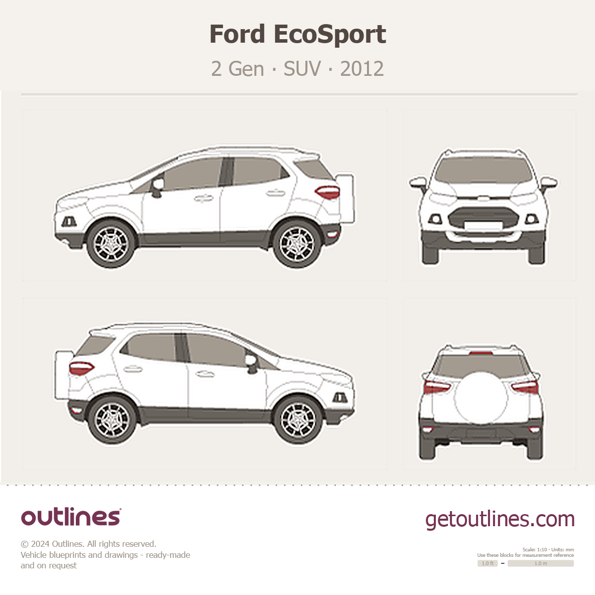 This is a blueprint of the EcoSport, produced by carmaker Ford in 2012 - 2017. It features a SUV body design and is classified as a Crossover vehicle.