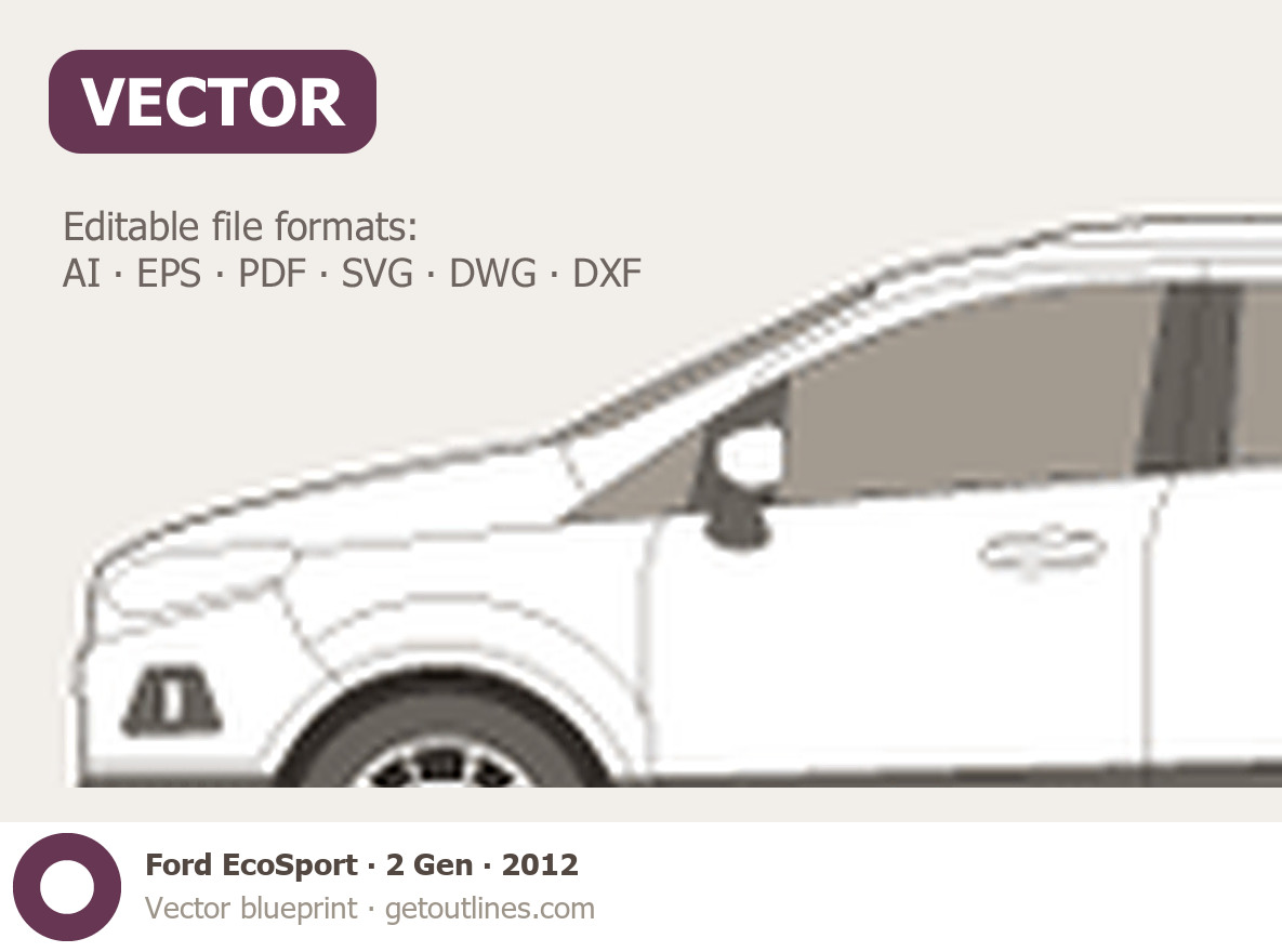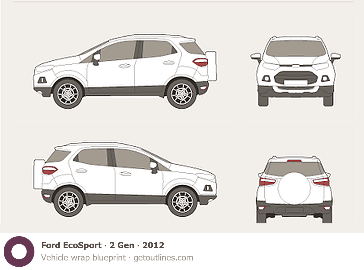 This 2012 Ford EcoSport 2 Gen SUV blueprint helps designers, wrap studios, and 3D artists simplify their workflow and save valuable time for creative work instead of routine tasks.
