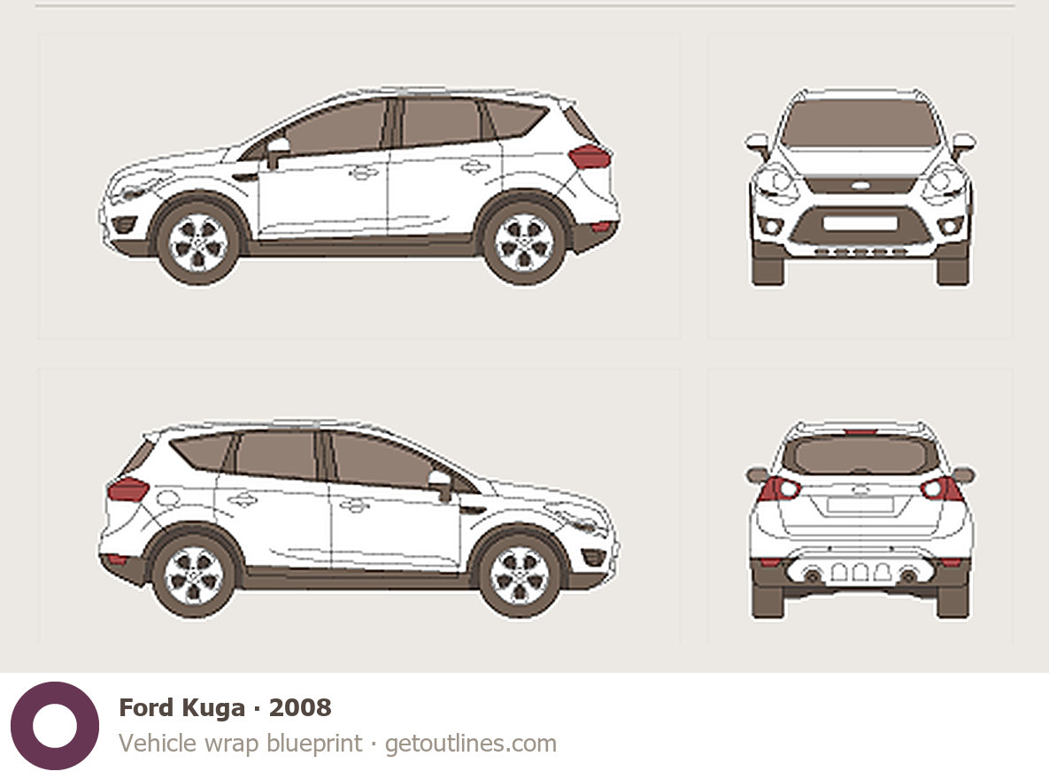 Buy this Ford Kuga blueprint and line drawing in high-quality editable vector file formats. Best for 3D and car wrap design.