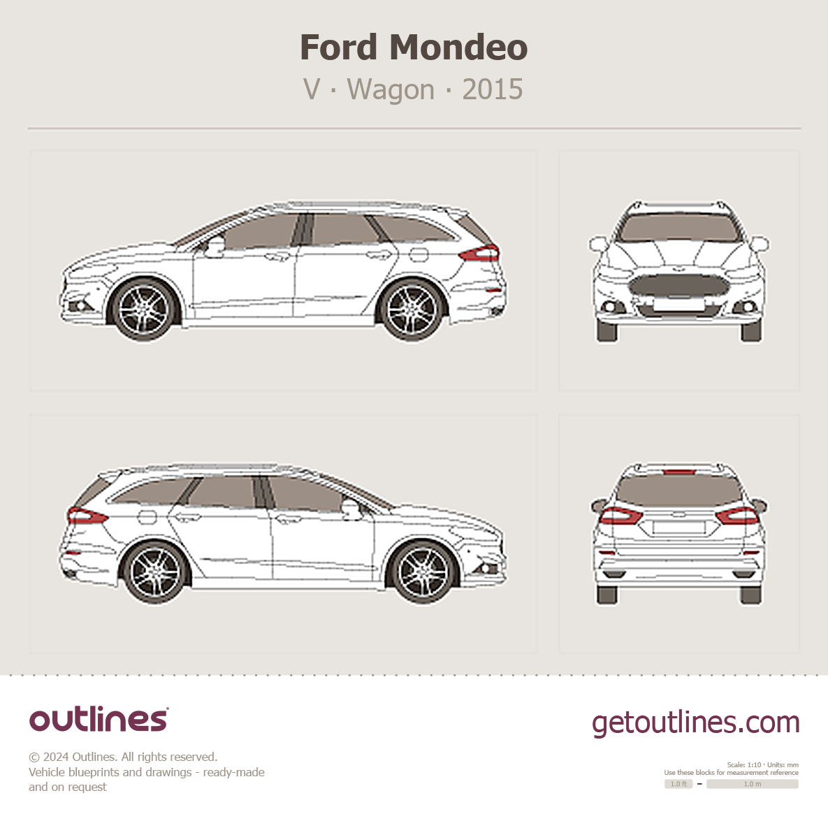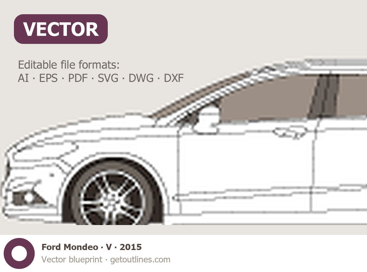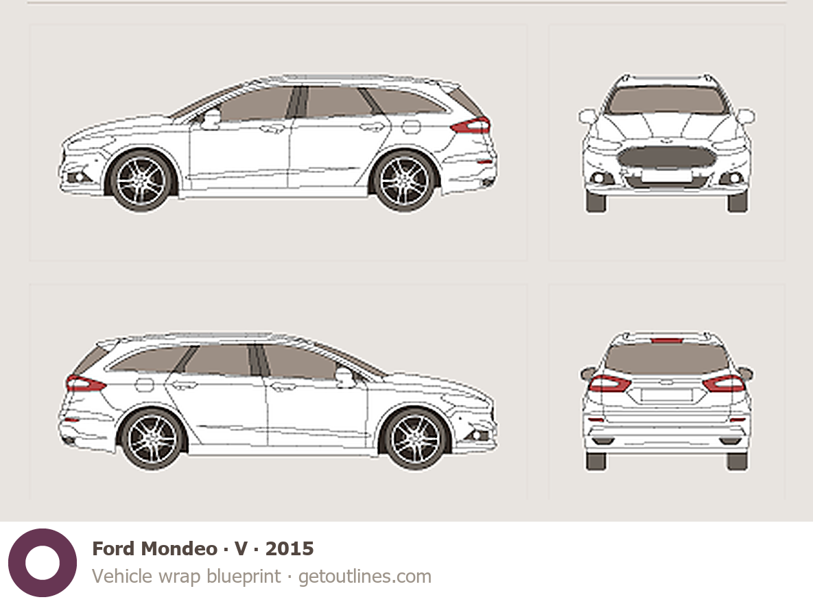 This 2015 Ford Mondeo V Sedan blueprint helps designers, wrap studios, and 3D artists simplify their workflow and save valuable time for creative work instead of routine tasks.