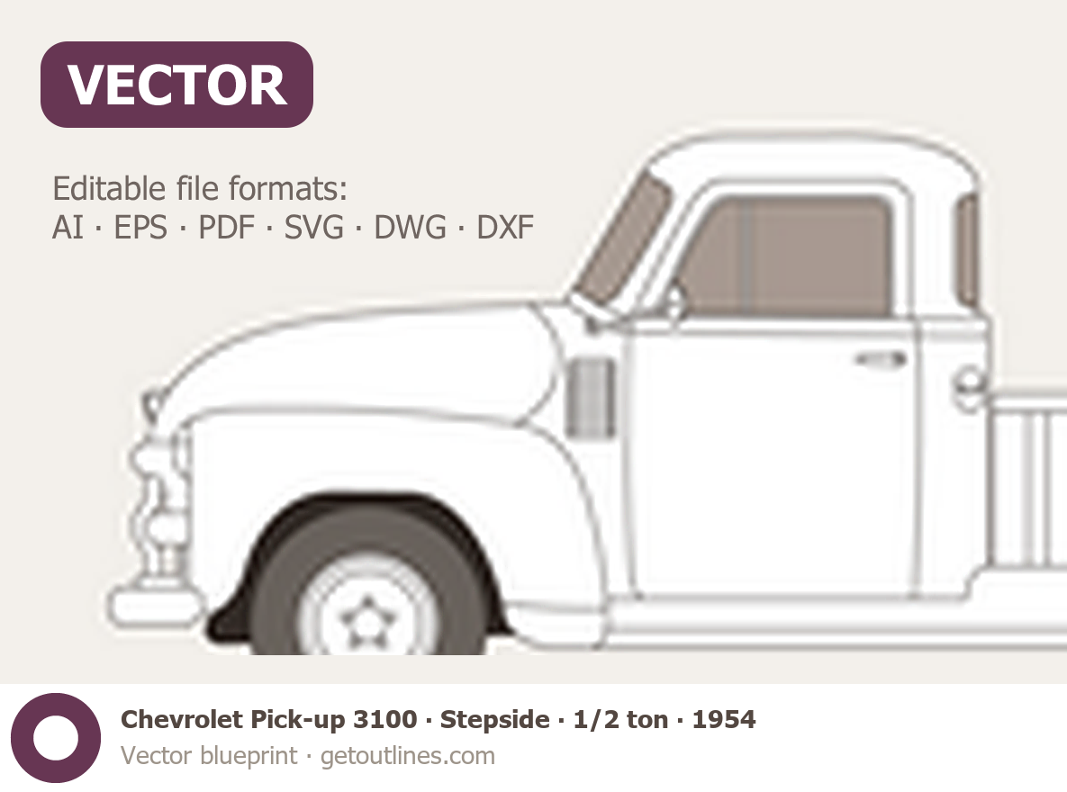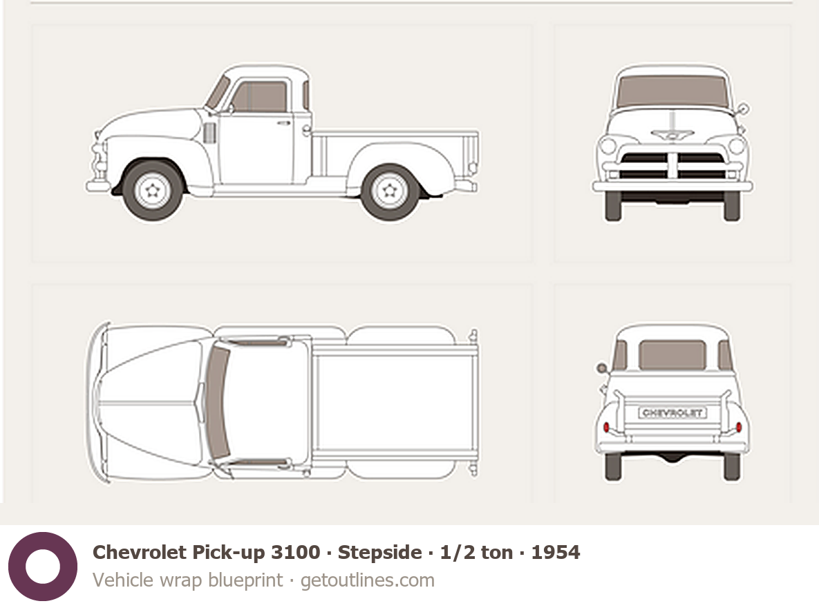 Buy this Chevrolet Pick-up 3100 Stepside blueprint and line drawing in high-quality editable vector file formats. Best for 3D and car wrap design.