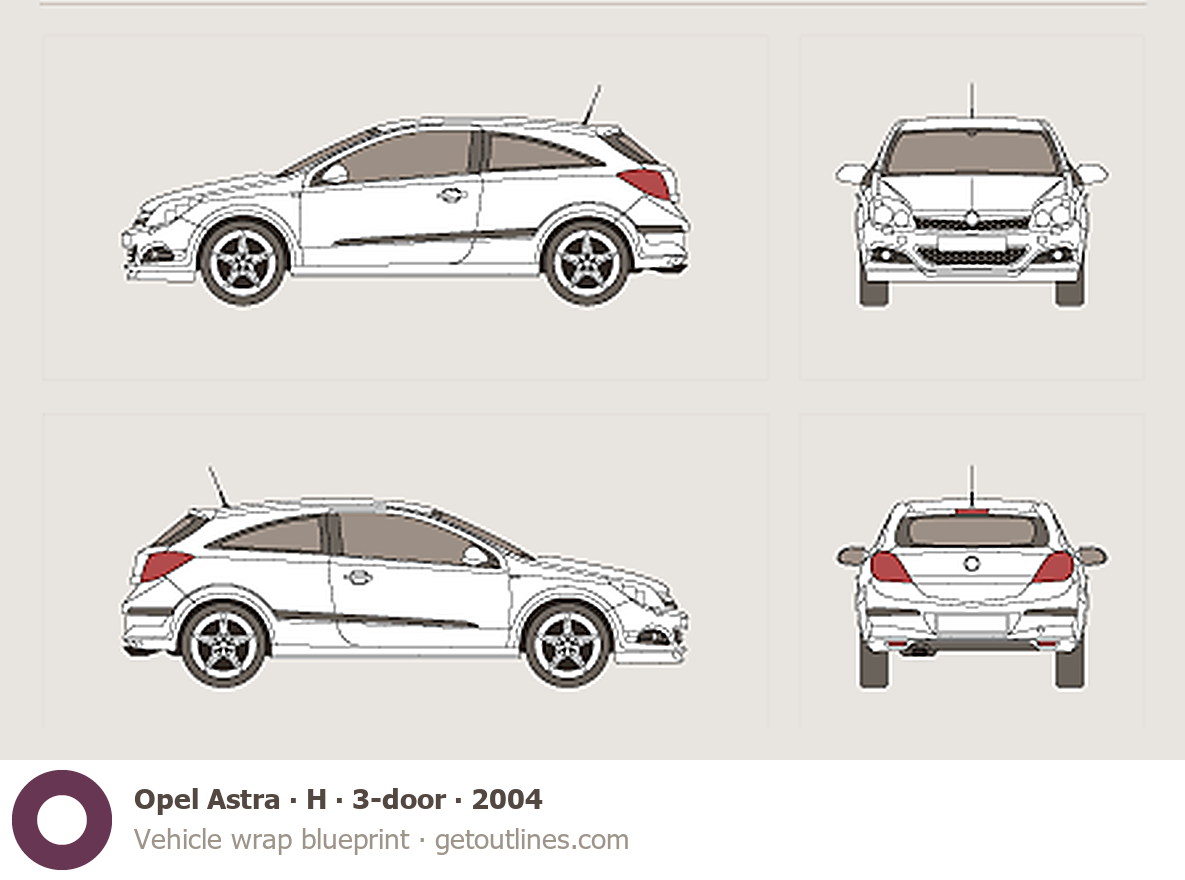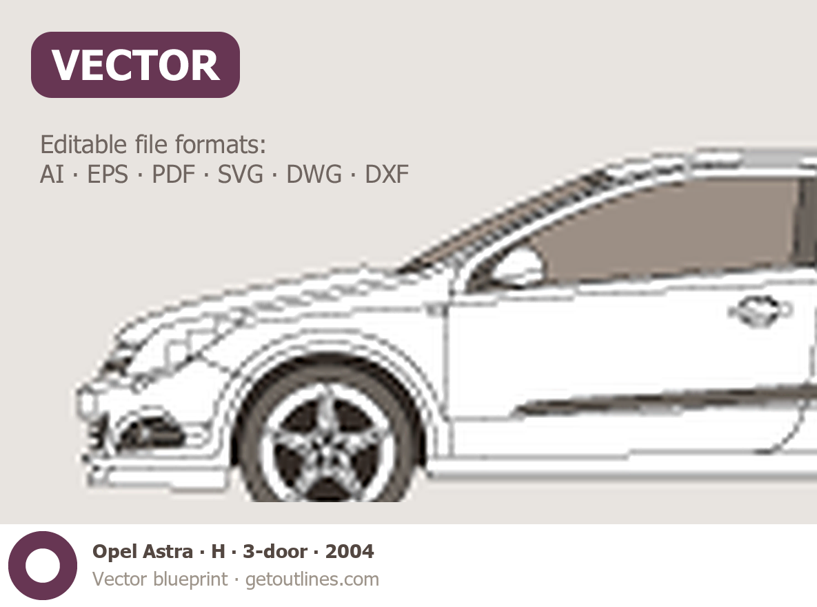 Buy this Opel Astra H blueprint and line drawing in high-quality editable vector file formats. Best for 3D and car wrap design.