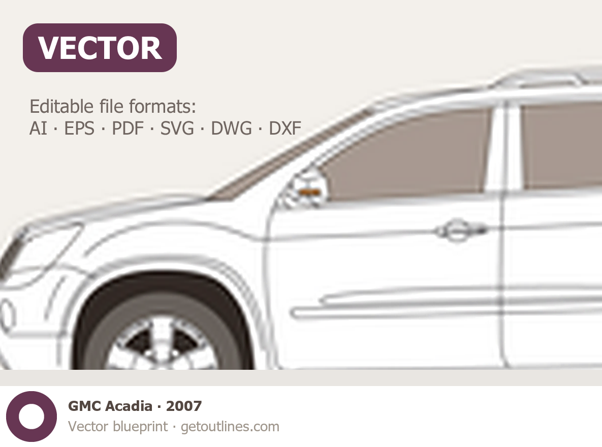This 2007 GMC Acadia SUV blueprint helps designers, wrap studios, and 3D artists simplify their workflow and save valuable time for creative work instead of routine tasks.