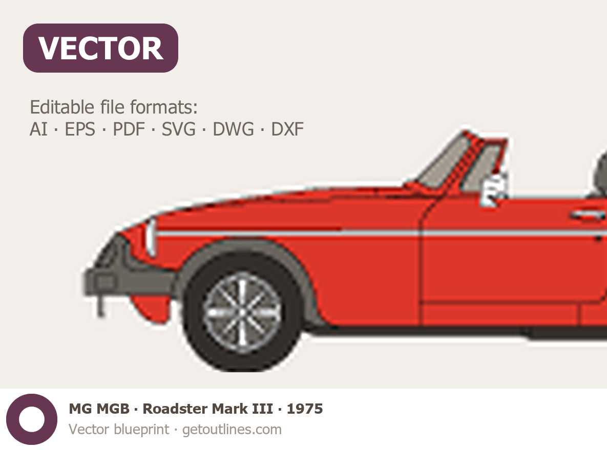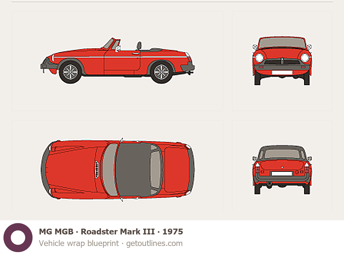 Buy this MG MGB Roadster Mark III blueprint and line drawing in high-quality editable vector file formats. Best for 3D and car wrap design.
