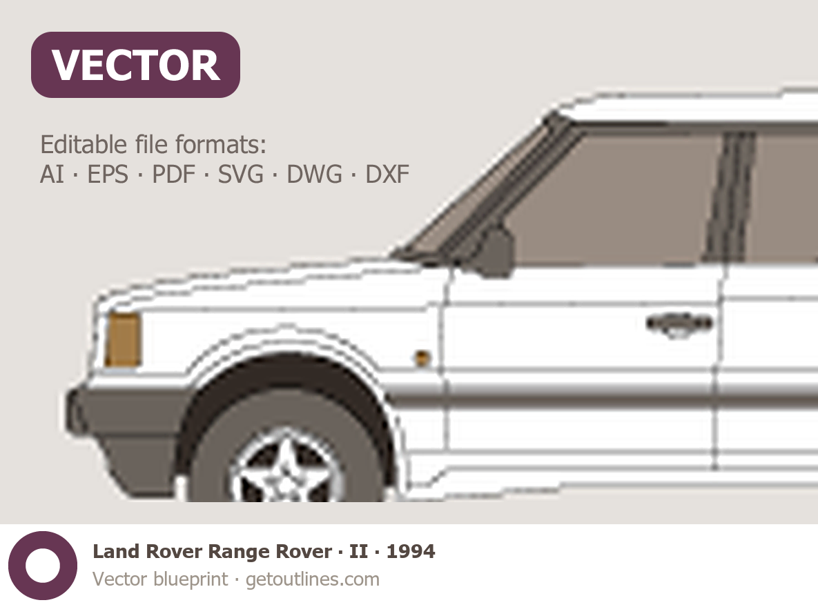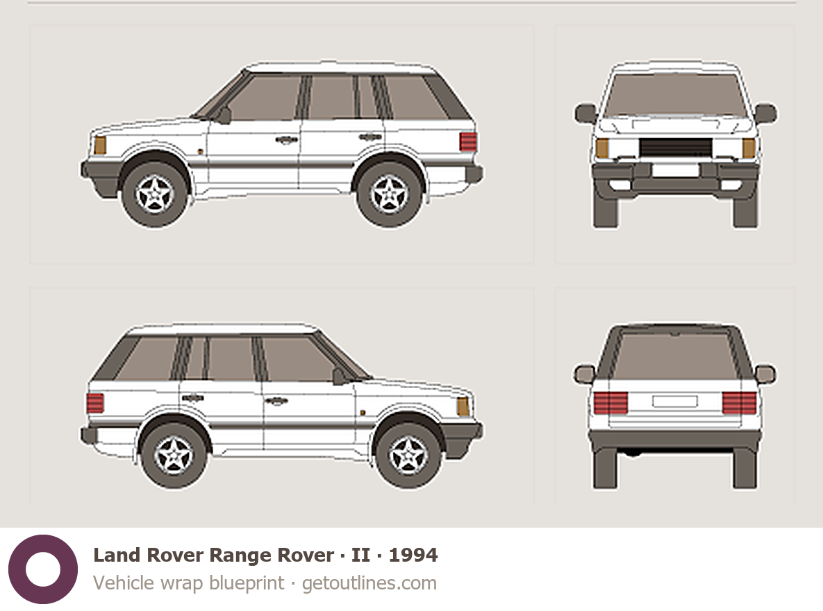 This 1994 Land Rover Range Rover II SUV blueprint helps designers, wrap studios, and 3D artists simplify their workflow and save valuable time for creative work instead of routine tasks.