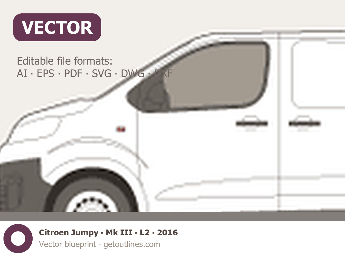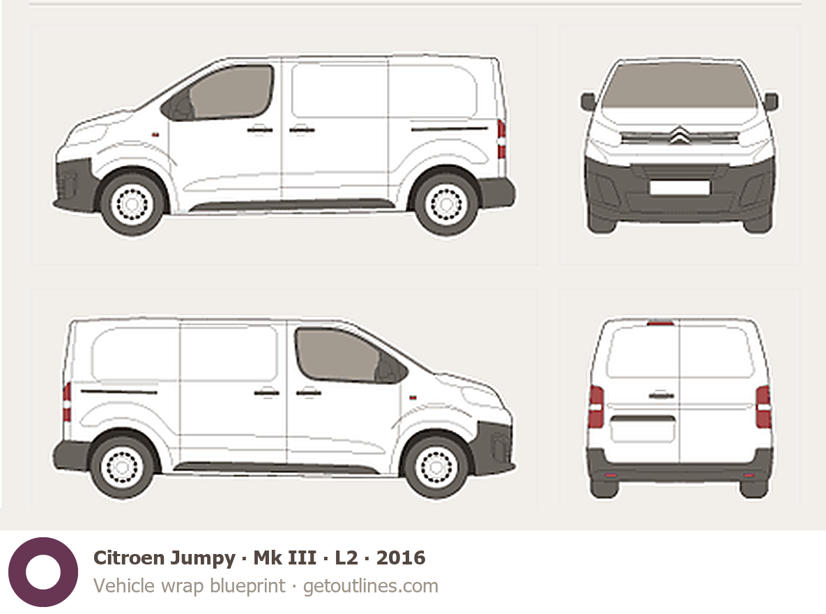 This 2016 Citroen Jumpy Mk III L2 Van blueprint helps designers, wrap studios, and 3D artists simplify their workflow and save valuable time for creative work instead of routine tasks.
