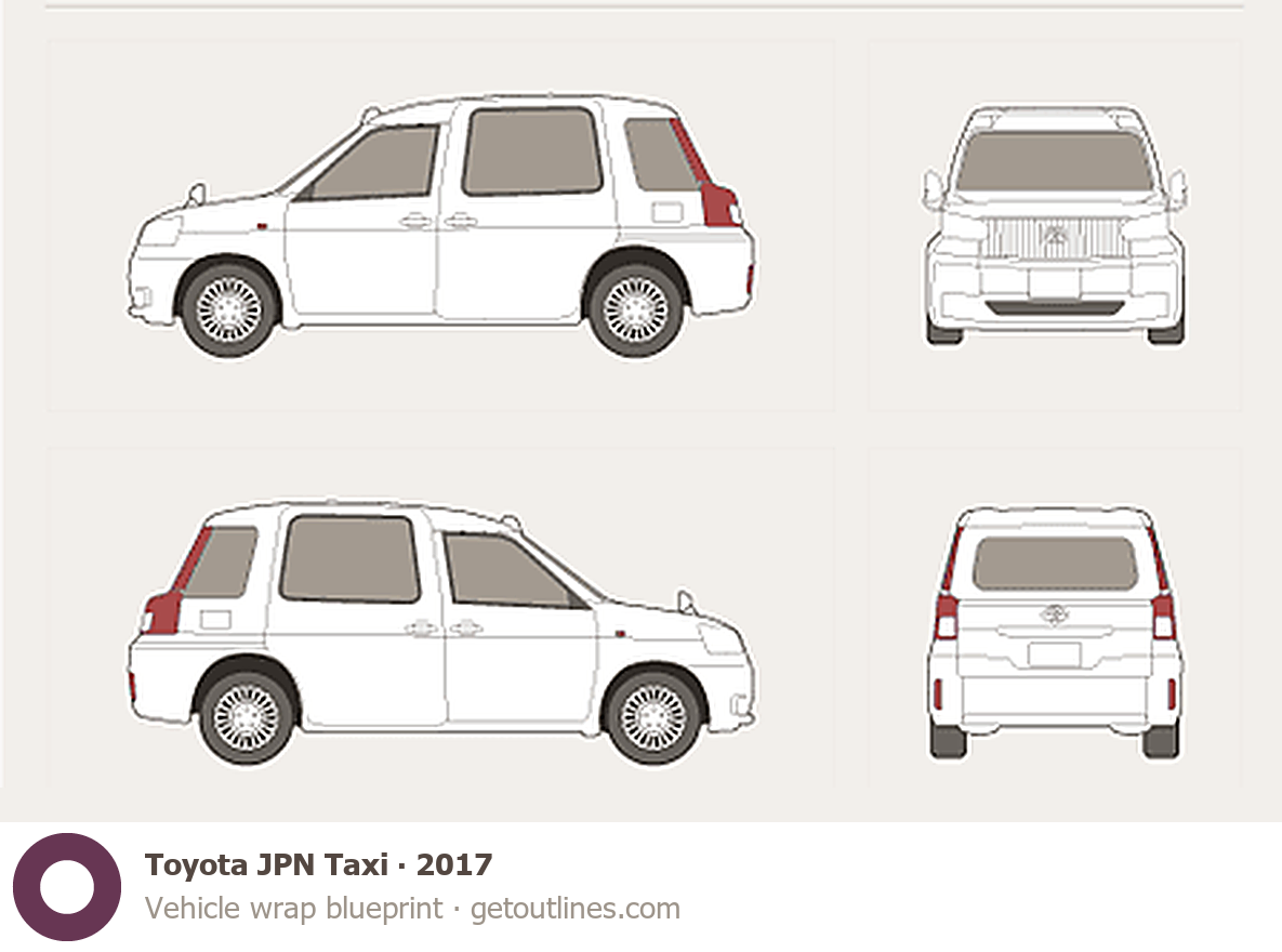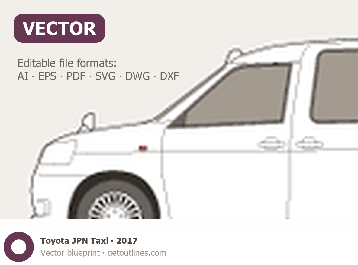 Buy this Toyota JPN Taxi [Legacy] blueprint and line drawing in high-quality editable vector file formats. Best for 3D and car wrap design.