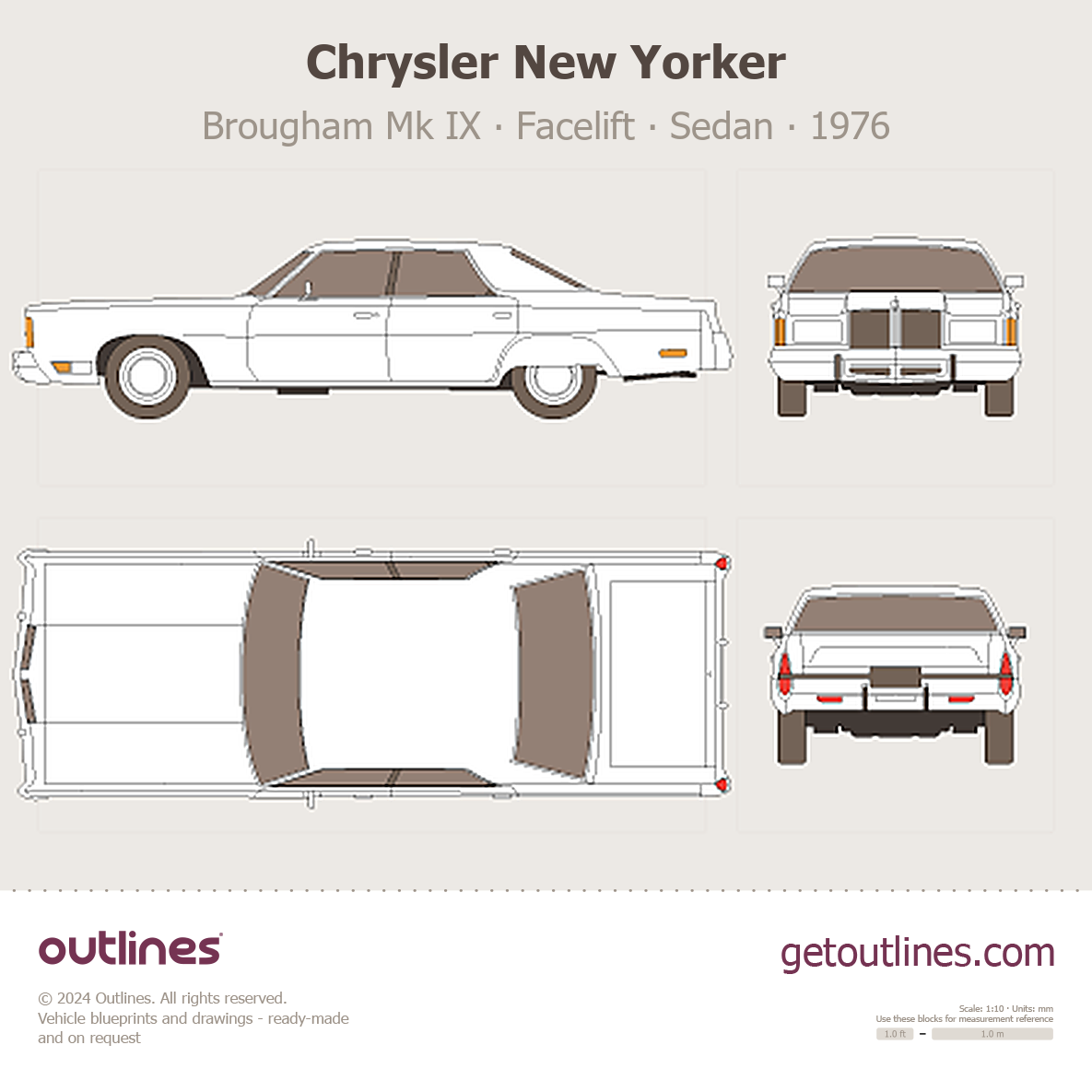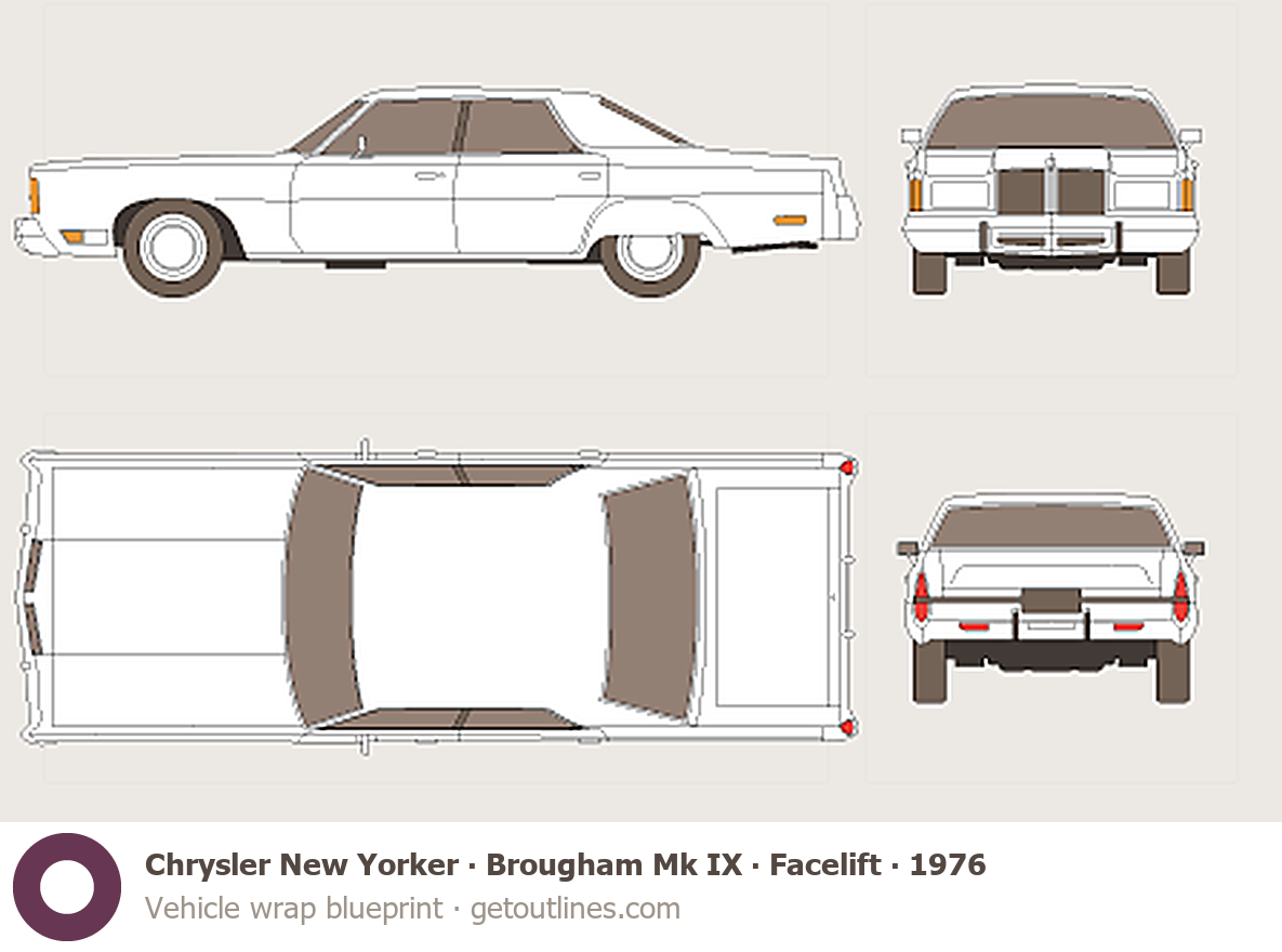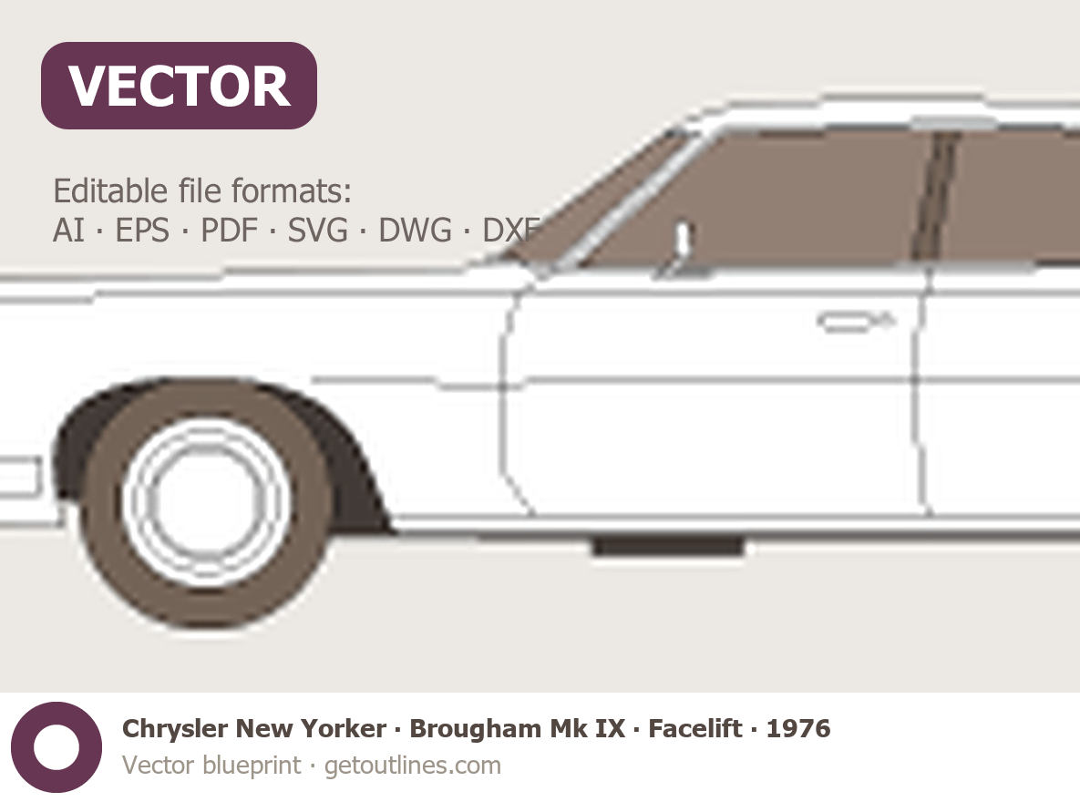 Buy this Chrysler New Yorker Brougham Mk IX blueprint and line drawing in high-quality editable vector file formats. Best for 3D and car wrap design.