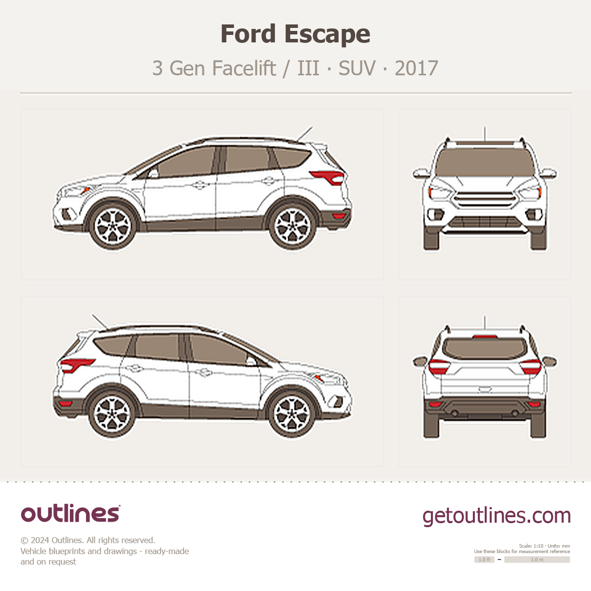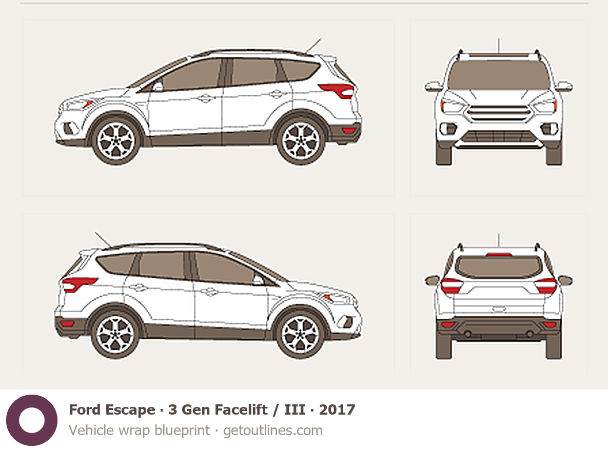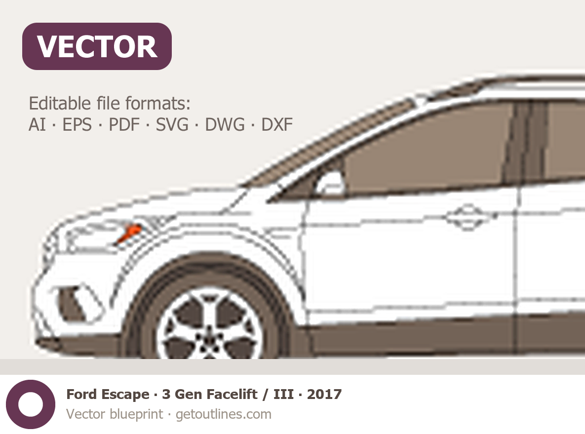 Buy this Ford Escape 3 Gen Facelift / III blueprint and line drawing in high-quality editable vector file formats. Best for 3D and car wrap design.