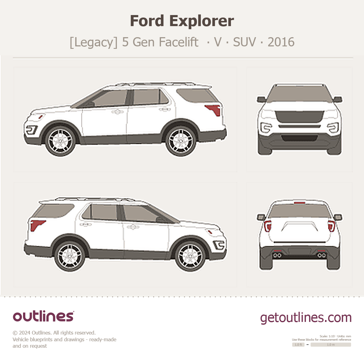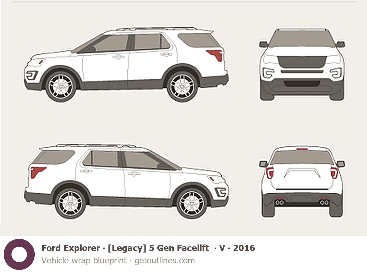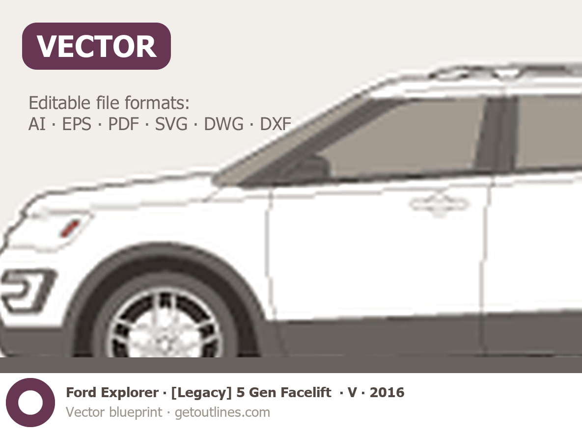 Buy this Ford Explorer [Legacy] 5 Gen Facelift ∙ V blueprint and line drawing in high-quality editable vector file formats. Best for 3D and car wrap design.