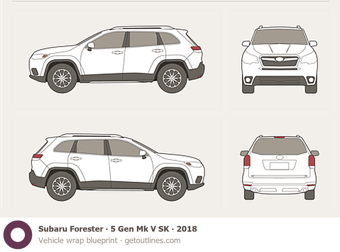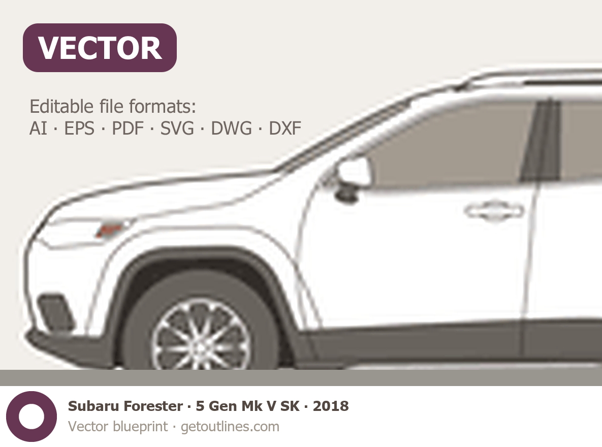 Buy this Subaru Forester 5 Gen Mk V SK blueprint and line drawing in high-quality editable vector file formats. Best for 3D and car wrap design.