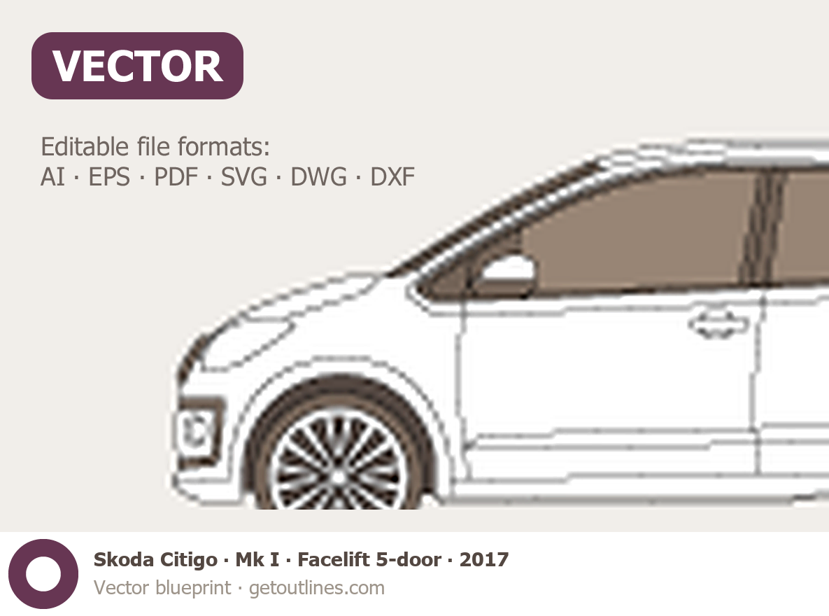 This 2017 Skoda Citigo Mk I Facelift 5-door Hatchback blueprint helps designers, wrap studios, and 3D artists simplify their workflow and save valuable time for creative work instead of routine tasks.