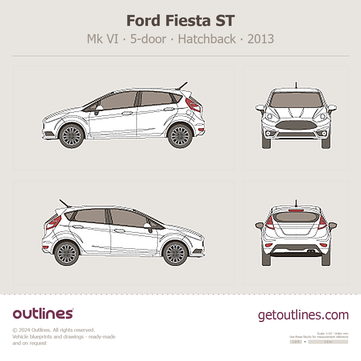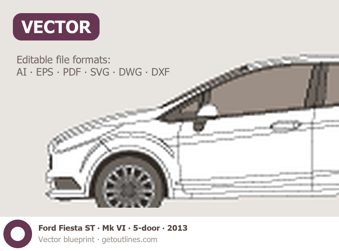 This 2013 Ford Fiesta ST Mk VI 5-door Hatchback blueprint helps designers, wrap studios, and 3D artists simplify their workflow and save valuable time for creative work instead of routine tasks.