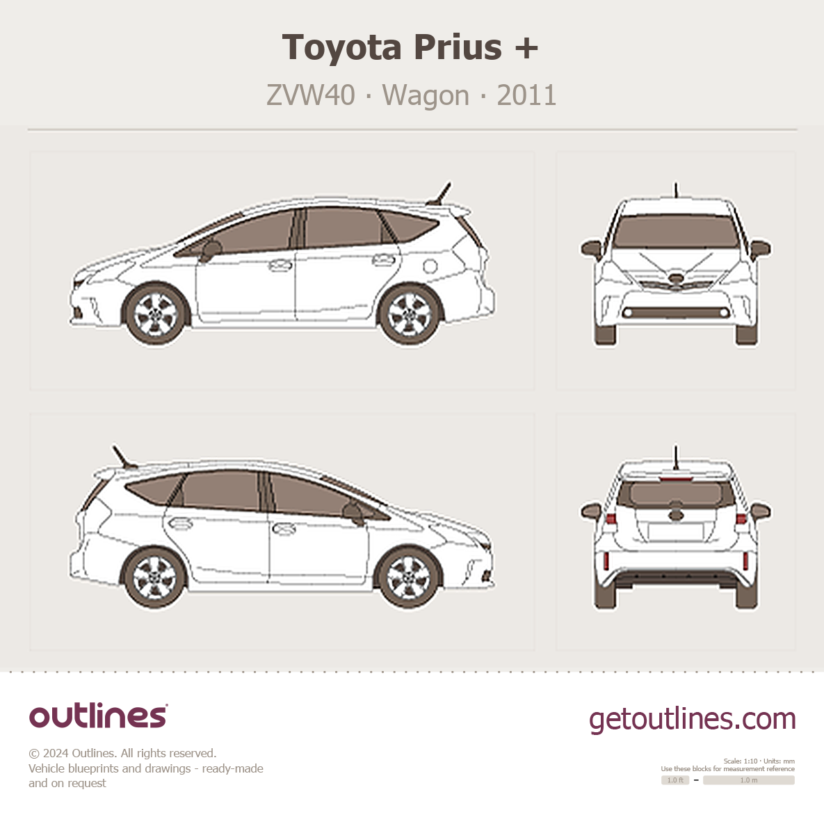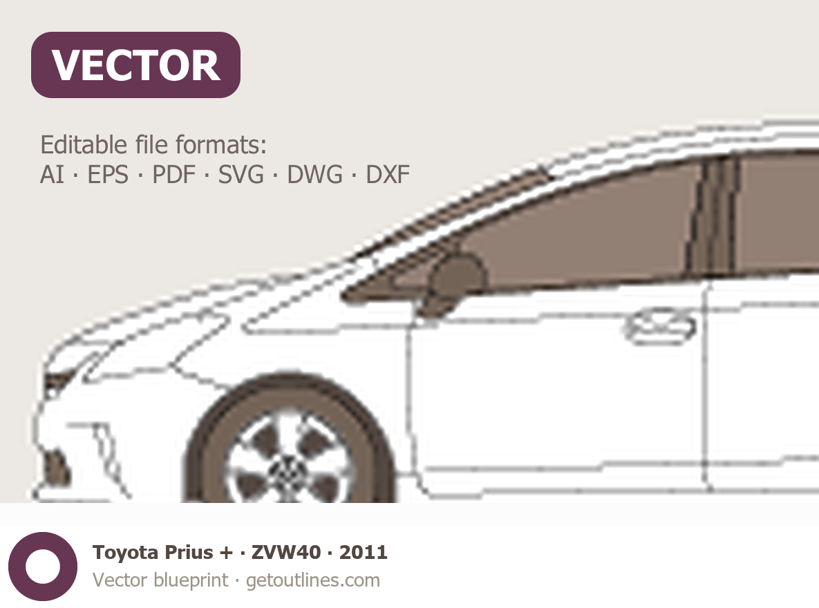 Buy this Toyota Prius + ZVW40 blueprint and line drawing in high-quality editable vector file formats. Best for 3D and car wrap design.