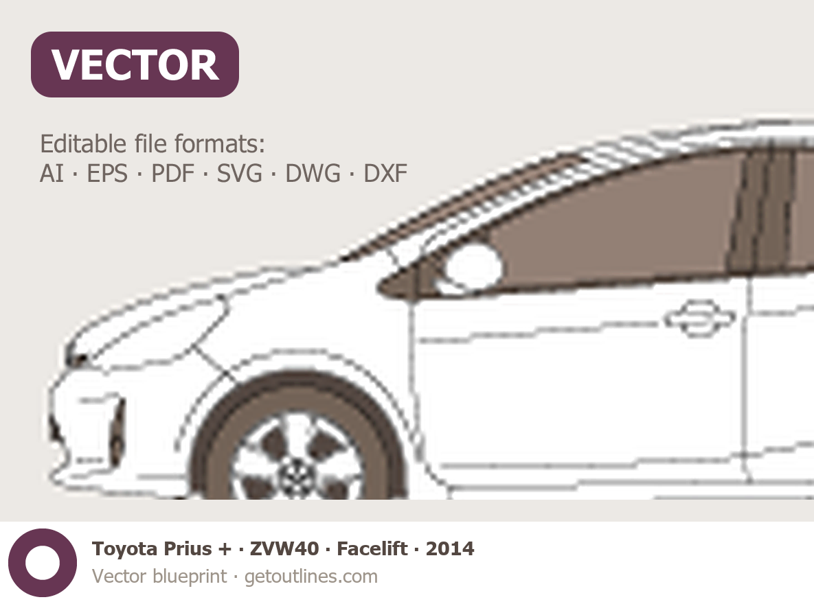 Buy this Toyota Prius + ZVW40 blueprint and line drawing in high-quality editable vector file formats. Best for 3D and car wrap design.