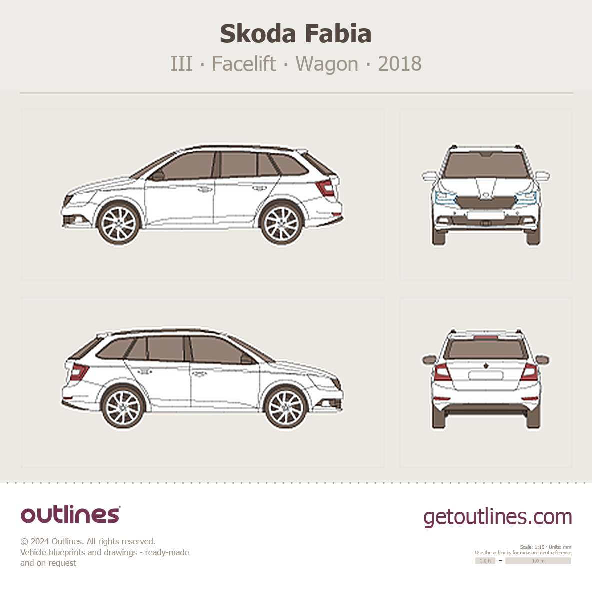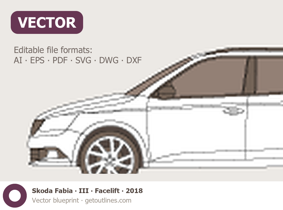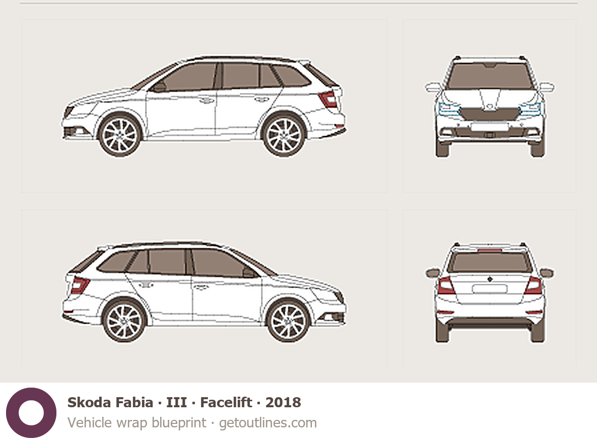 This 2018 Skoda Fabia III Facelift Wagon blueprint helps designers, wrap studios, and 3D artists simplify their workflow and save valuable time for creative work instead of routine tasks.