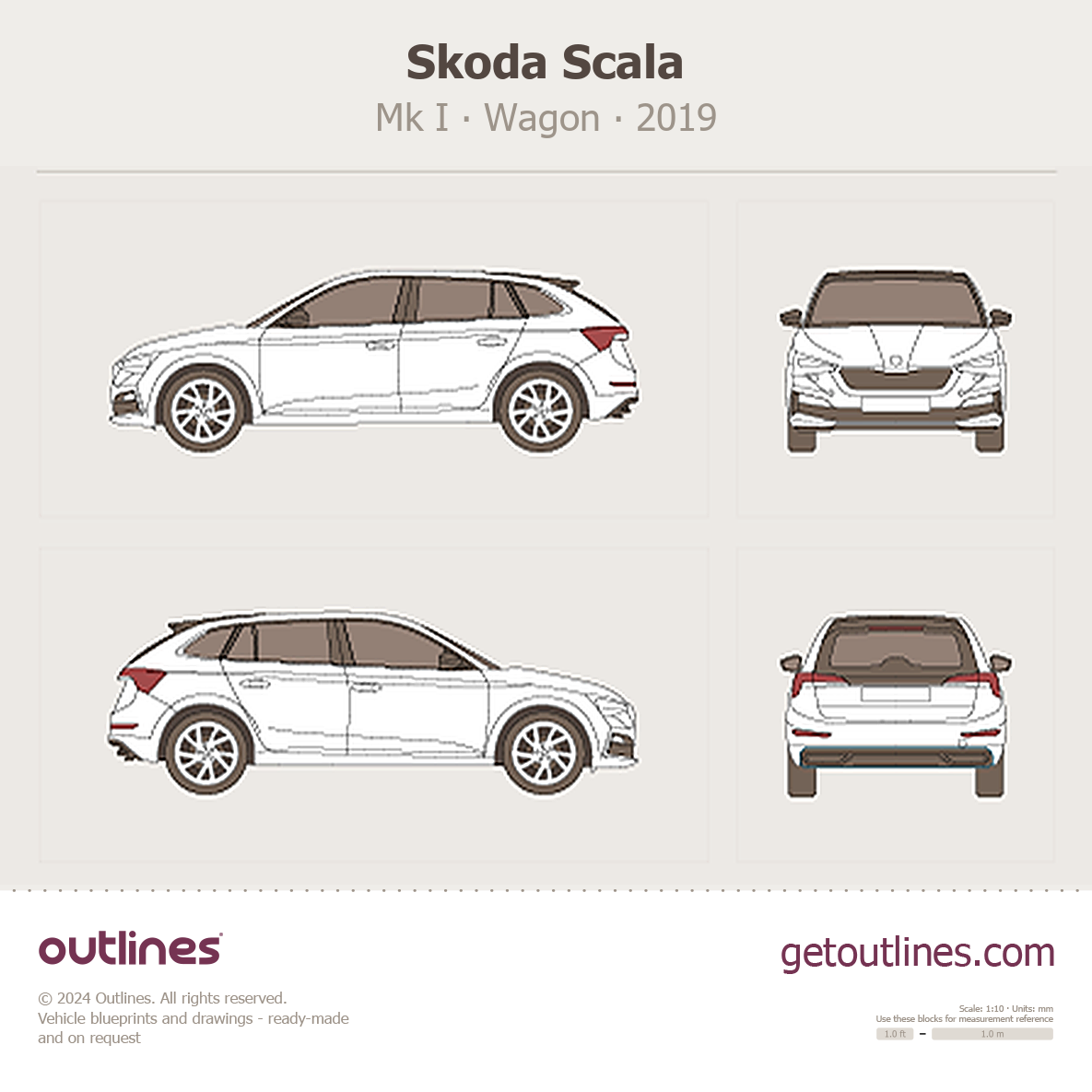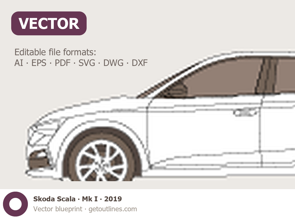 This 2019 Skoda Scala Mk I Wagon blueprint helps designers, wrap studios, and 3D artists simplify their workflow and save valuable time for creative work instead of routine tasks.