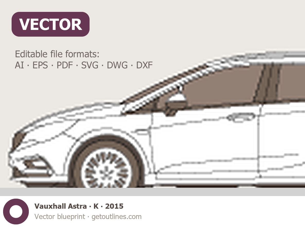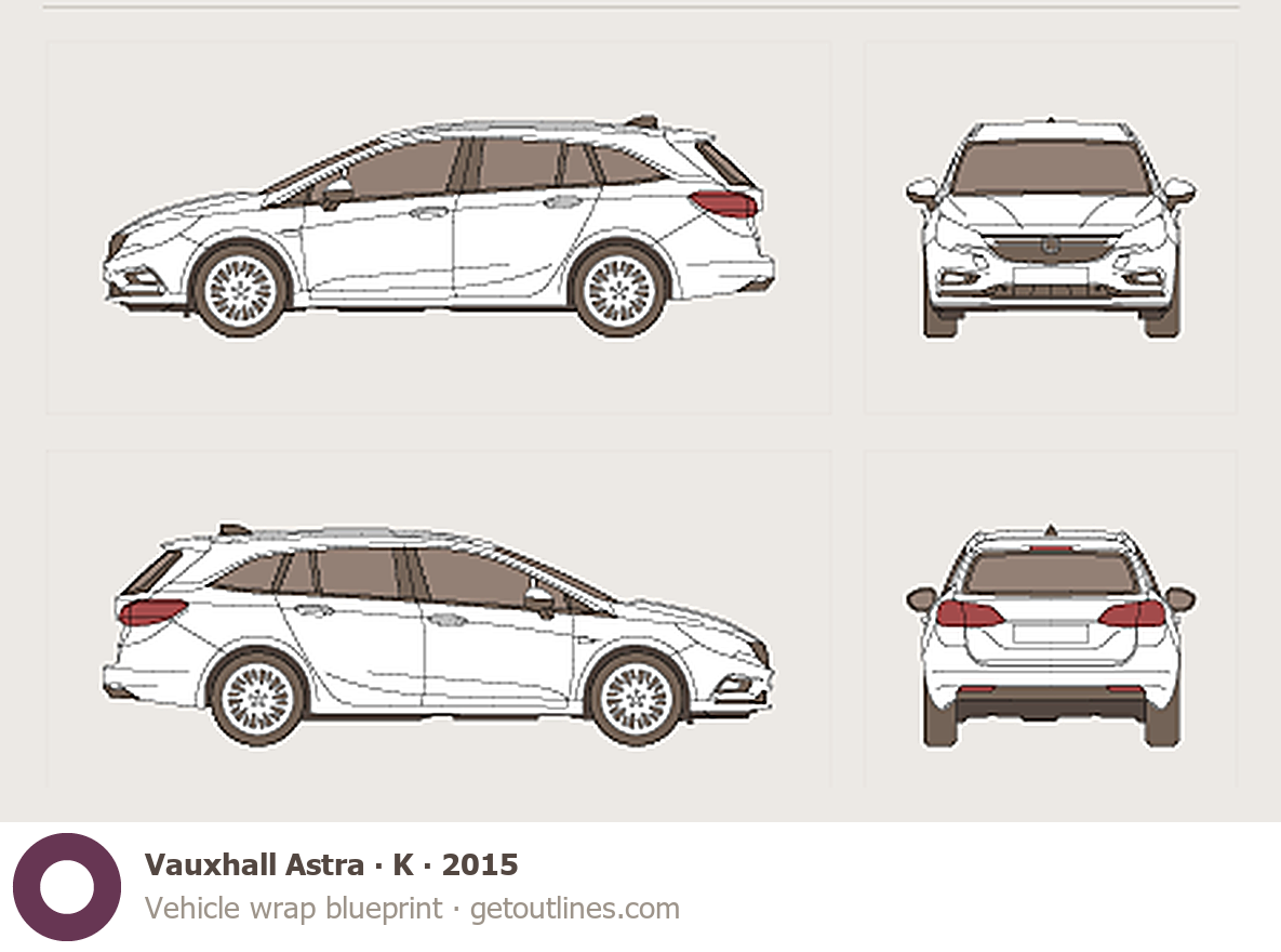 This 2015 Vauxhall Astra K Wagon blueprint helps designers, wrap studios, and 3D artists simplify their workflow and save valuable time for creative work instead of routine tasks.