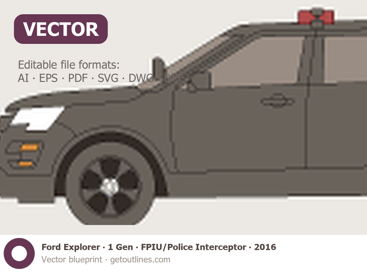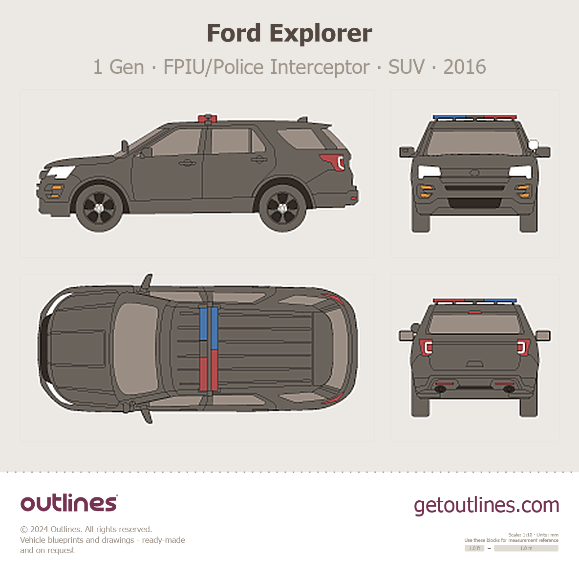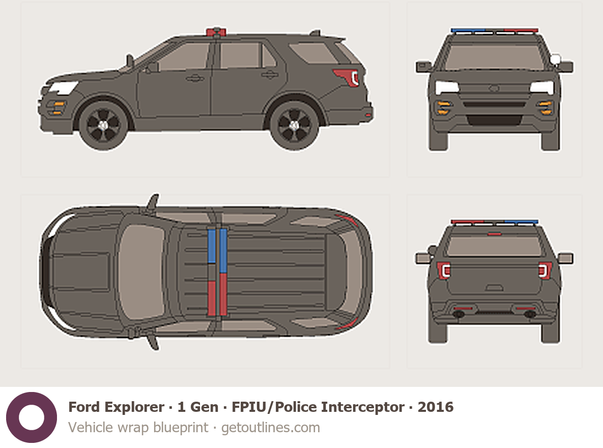 This 2016 Ford Explorer 1 Gen FPIU/Police Interceptor SUV blueprint helps designers, wrap studios, and 3D artists simplify their workflow and save valuable time for creative work instead of routine tasks.