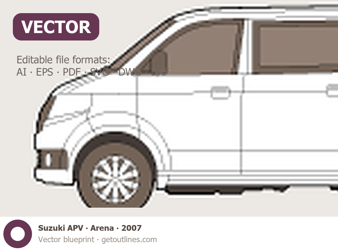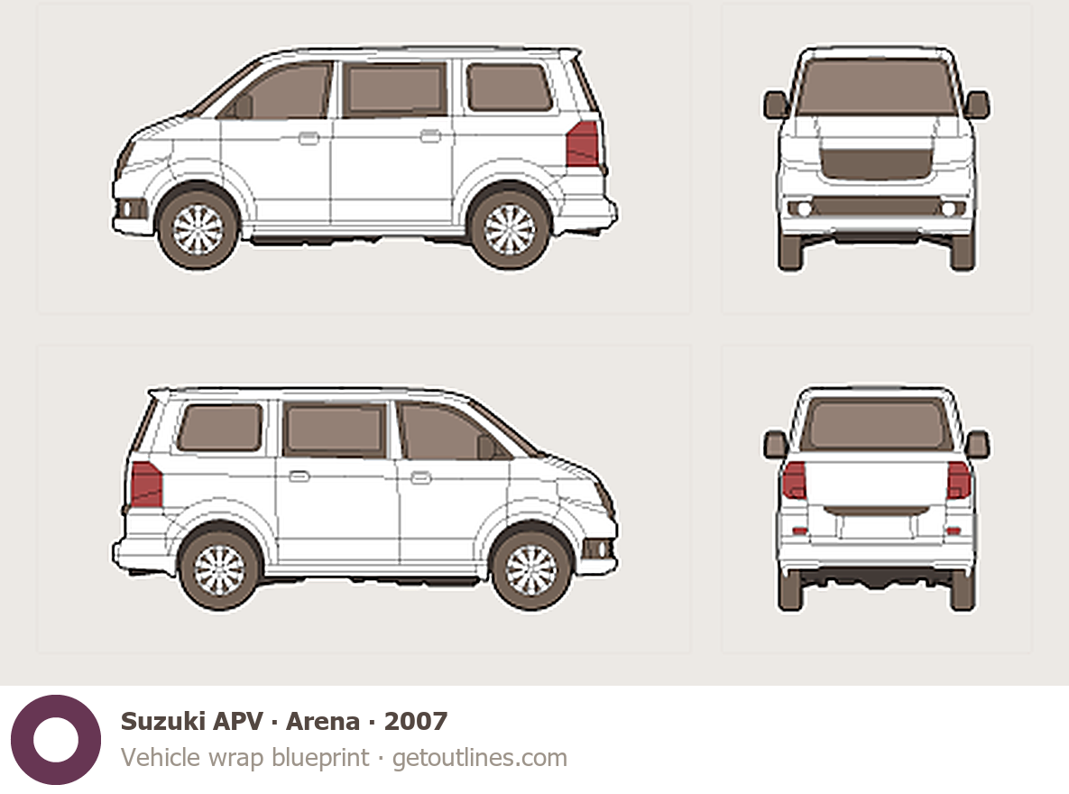 This 2007 Suzuki APV Arena Minivan blueprint helps designers, wrap studios, and 3D artists simplify their workflow and save valuable time for creative work instead of routine tasks.