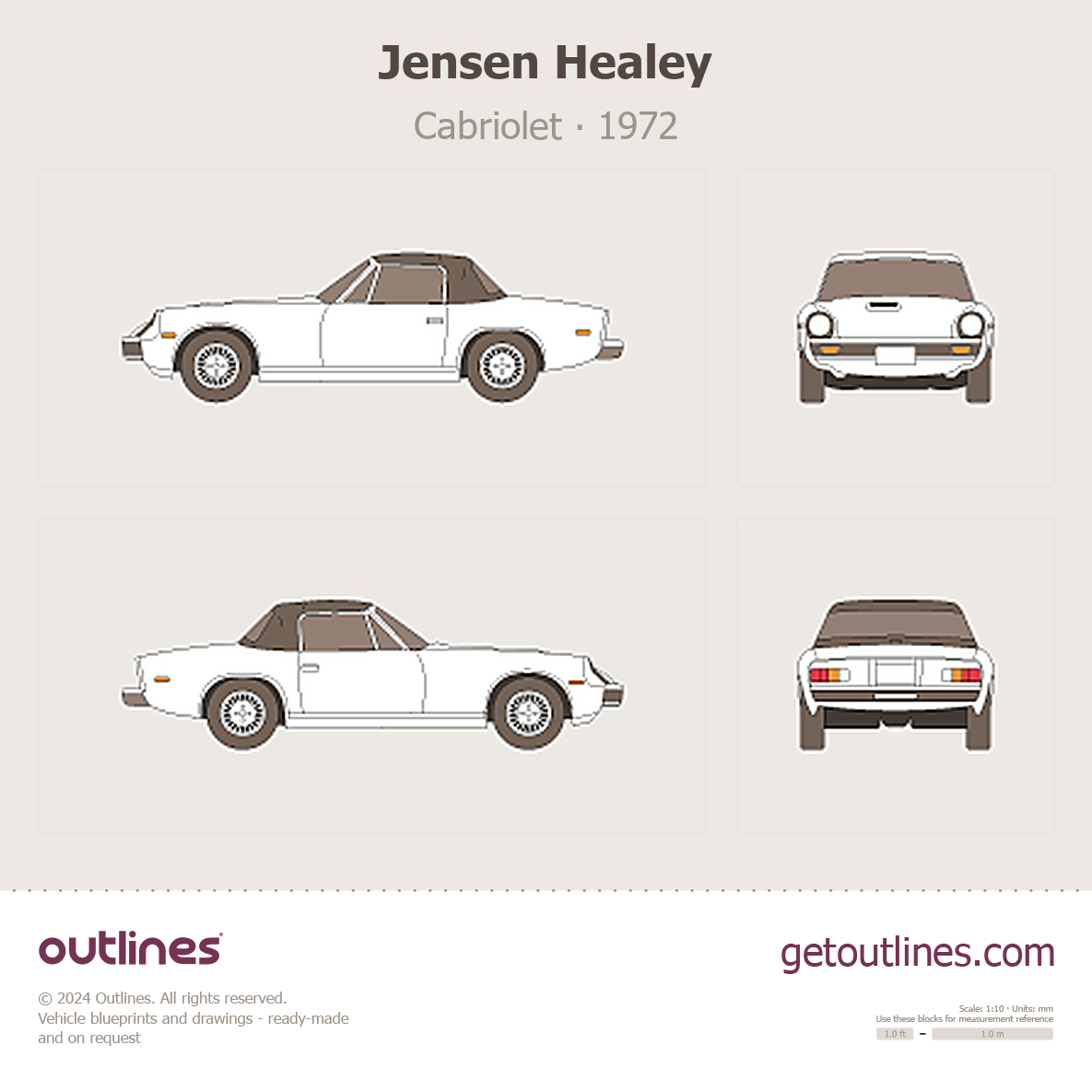 Buy this Jensen Healey blueprint and line drawing in high-quality editable vector file formats. Best for 3D and car wrap design.