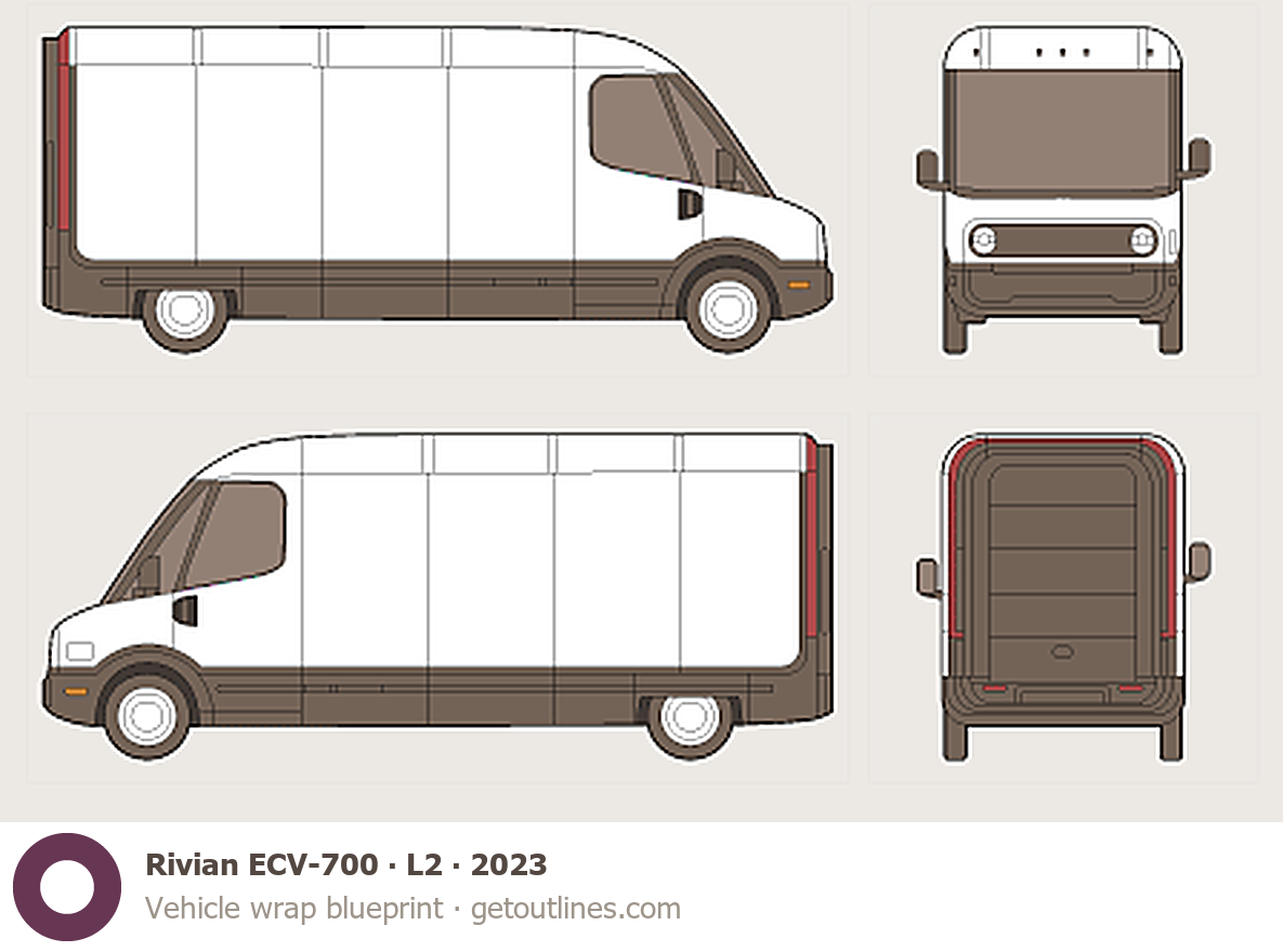 ● ECV-700 Wrap blueprints (Rivian ECV-700 wrap, paint, full body wrapping, vehicle graphics and signage, vinyls, and stickers)
