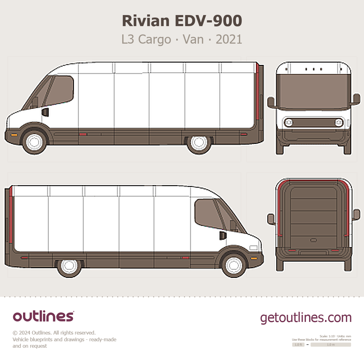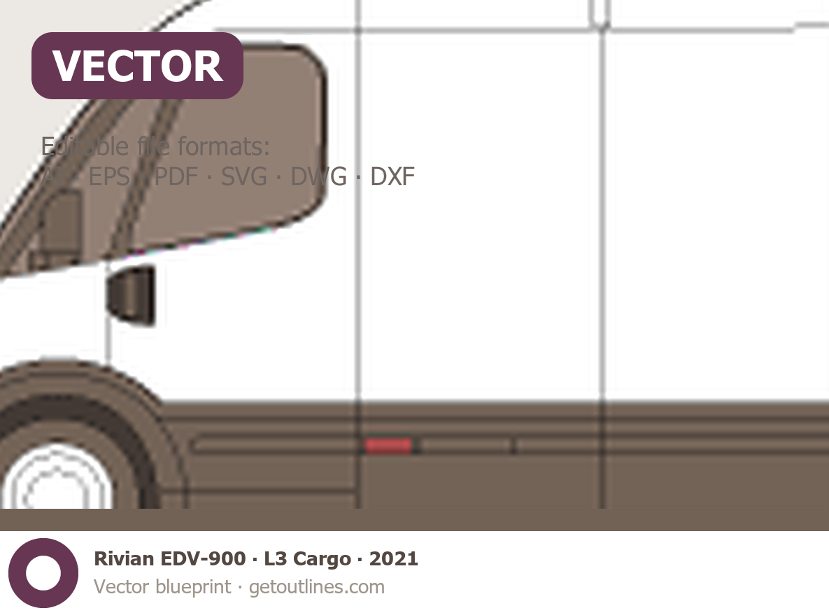Buy this Rivian EDV-900 blueprint and line drawing in high-quality editable vector file formats. Best for 3D and car wrap design.