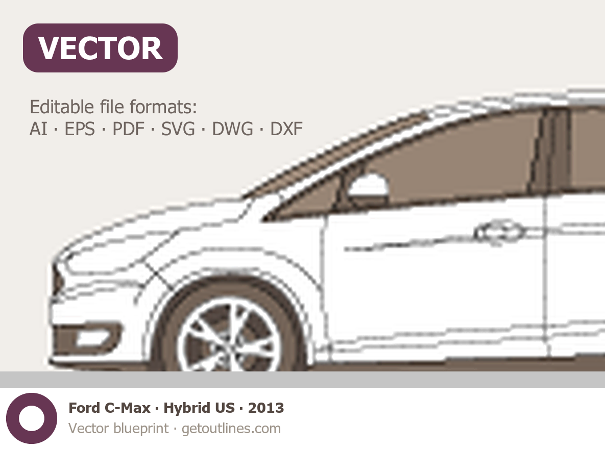 Buy this Ford C-Max Hybrid US blueprint and line drawing in high-quality editable vector file formats. Best for 3D and car wrap design.