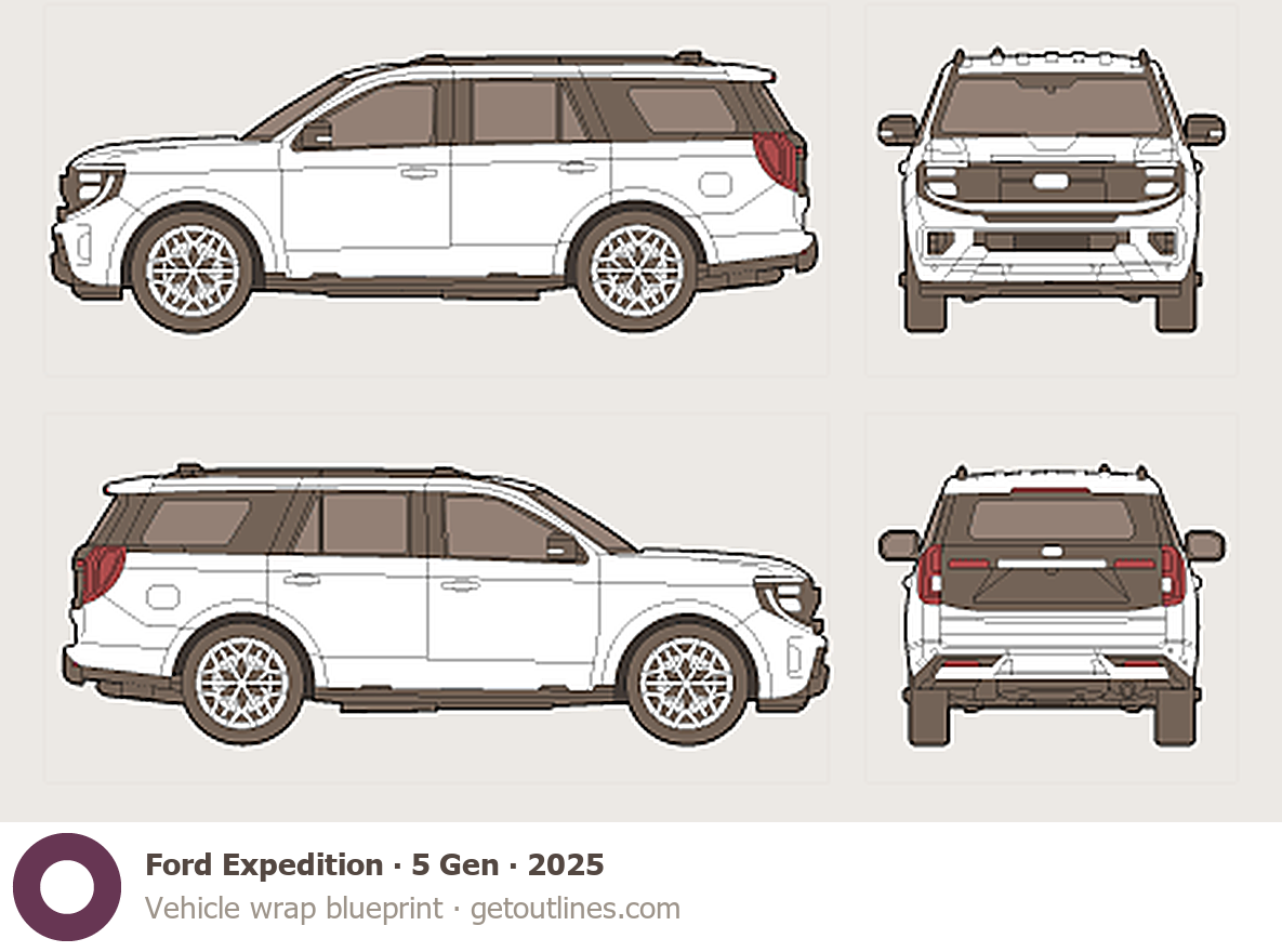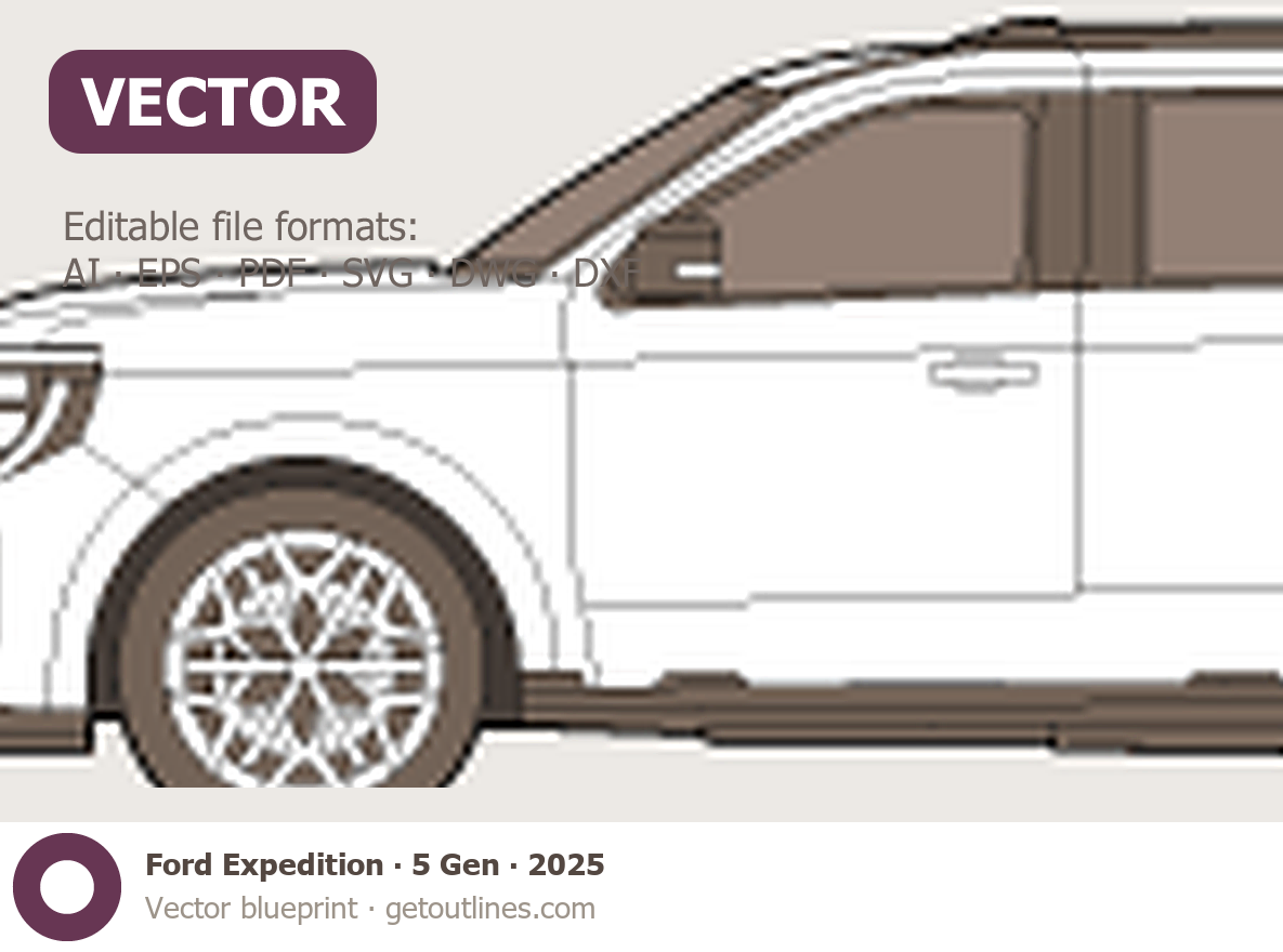 Buy this Ford Expedition 5 Gen blueprint and line drawing in high-quality editable vector file formats. Best for 3D and car wrap design.