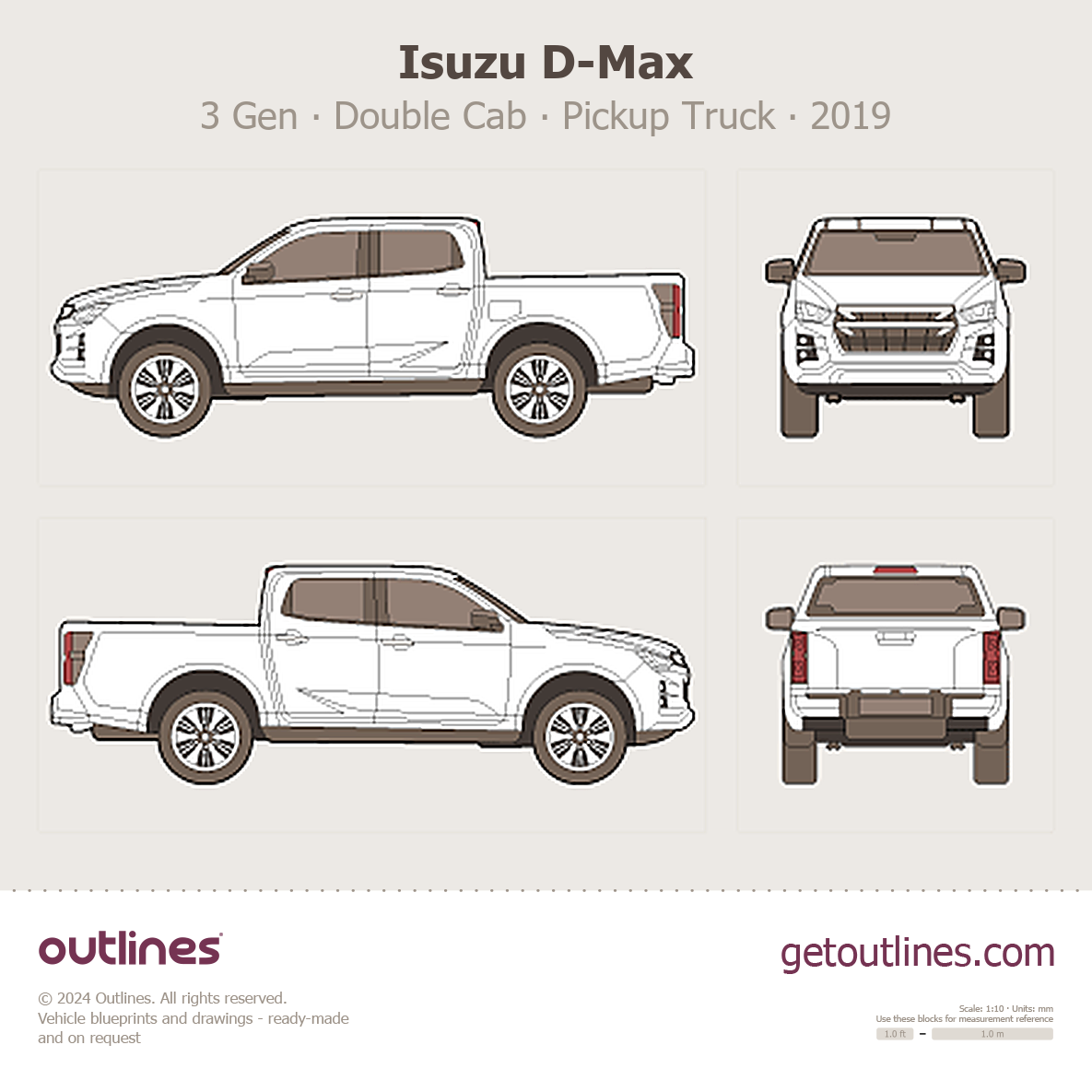 2019 Isuzu D-Max 3 Gen Double Cab Pickup Truck blueprint