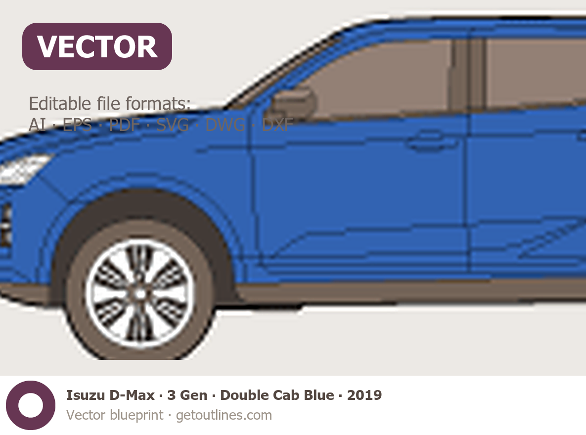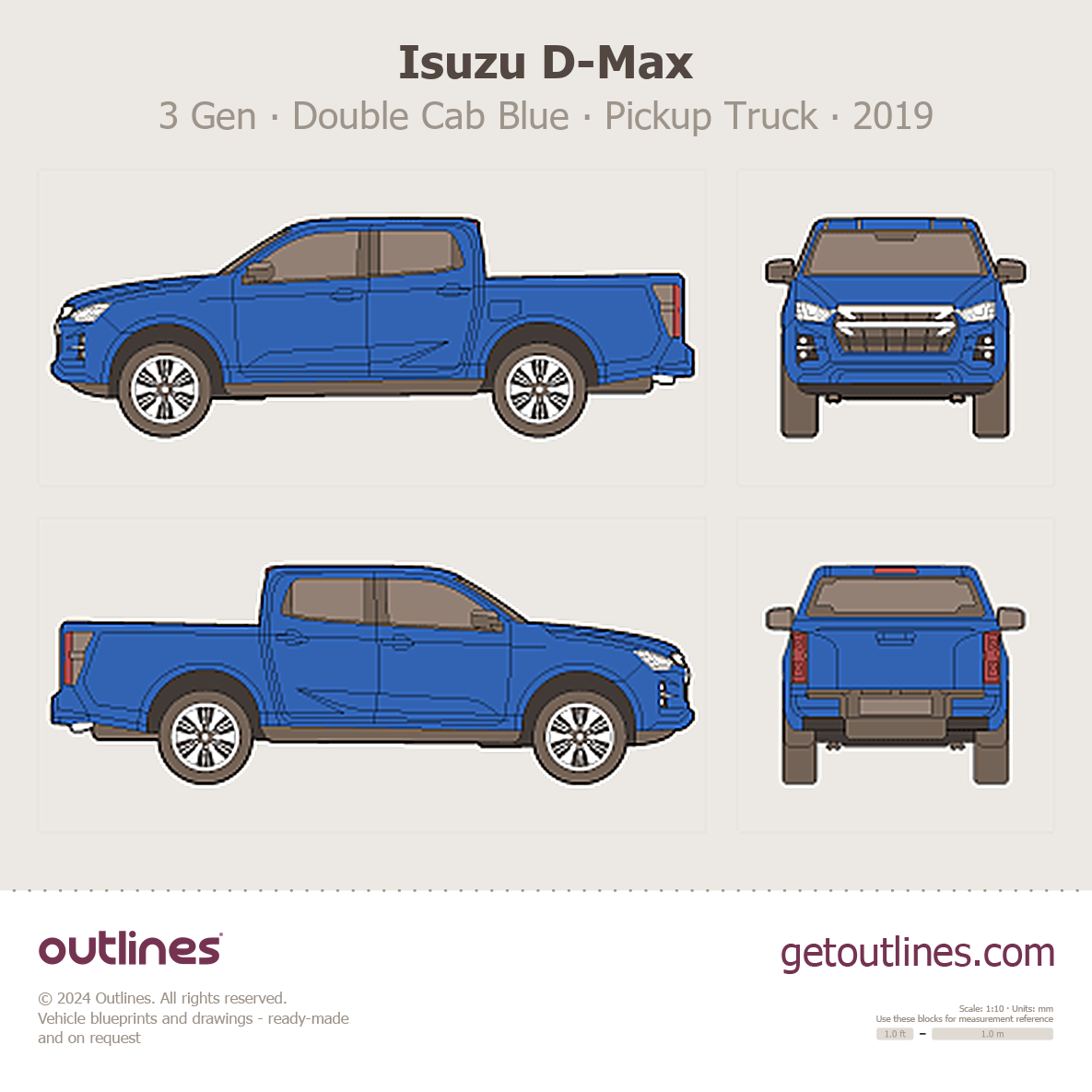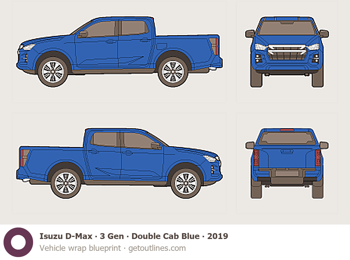 Buy this Isuzu D-Max 3 Gen blueprint and line drawing in high-quality editable vector file formats. Best for 3D and car wrap design.