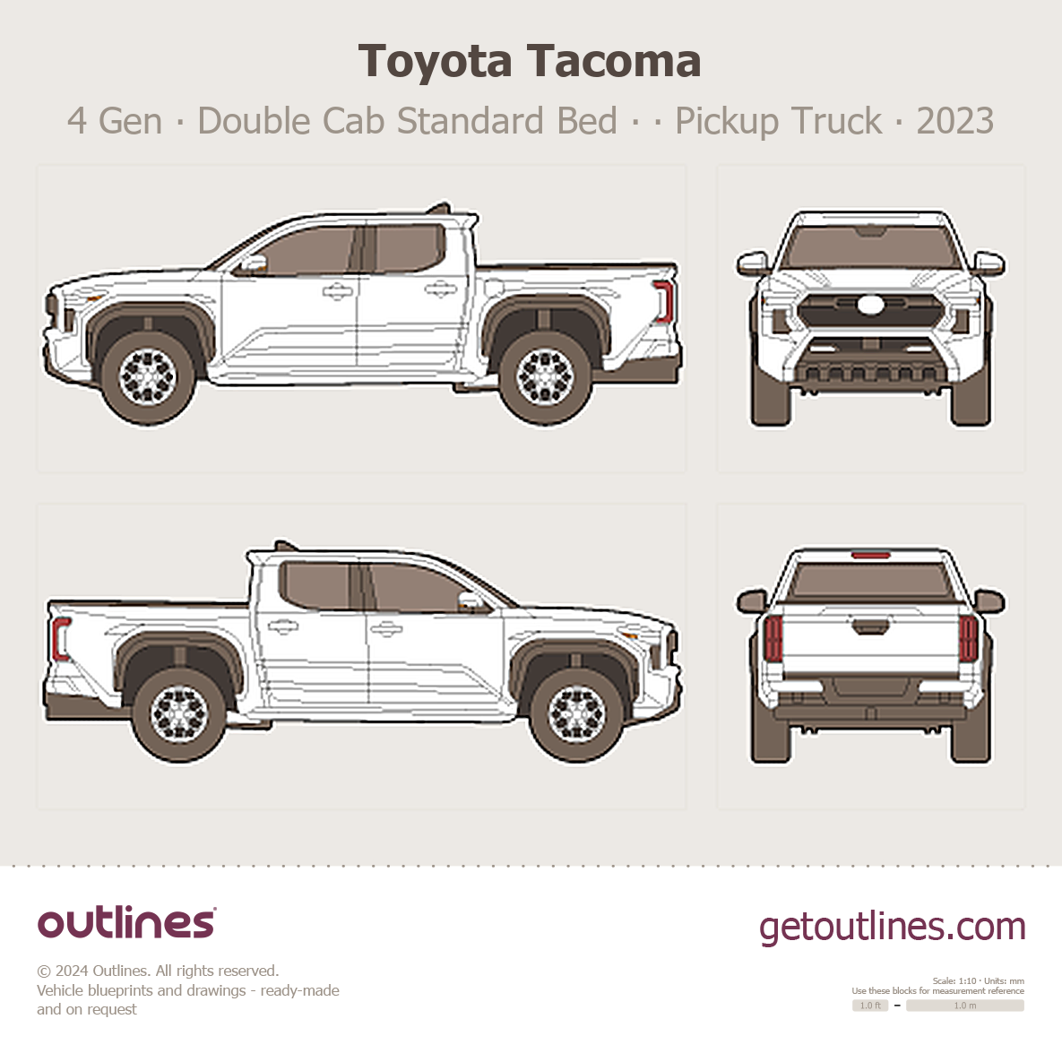 2023 Toyota Tacoma 4 Gen Double Cab Standard Bed ∙ Extended Cab ∙ TRD Off-Road Pickup Truck blueprint