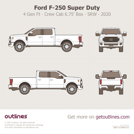 Buy this Ford F-250 Super Duty 4 Gen Facelift '20 blueprint and line drawing in high-quality editable vector file formats. Best for 3D and car wrap design.