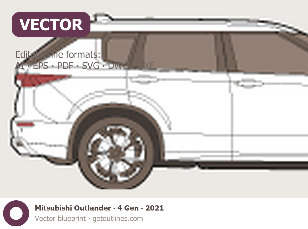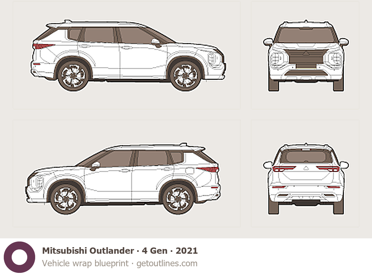 This 2021 Mitsubishi Outlander 4 Gen SUV blueprint helps designers, wrap studios, and 3D artists simplify their workflow and save valuable time for creative work instead of routine tasks.