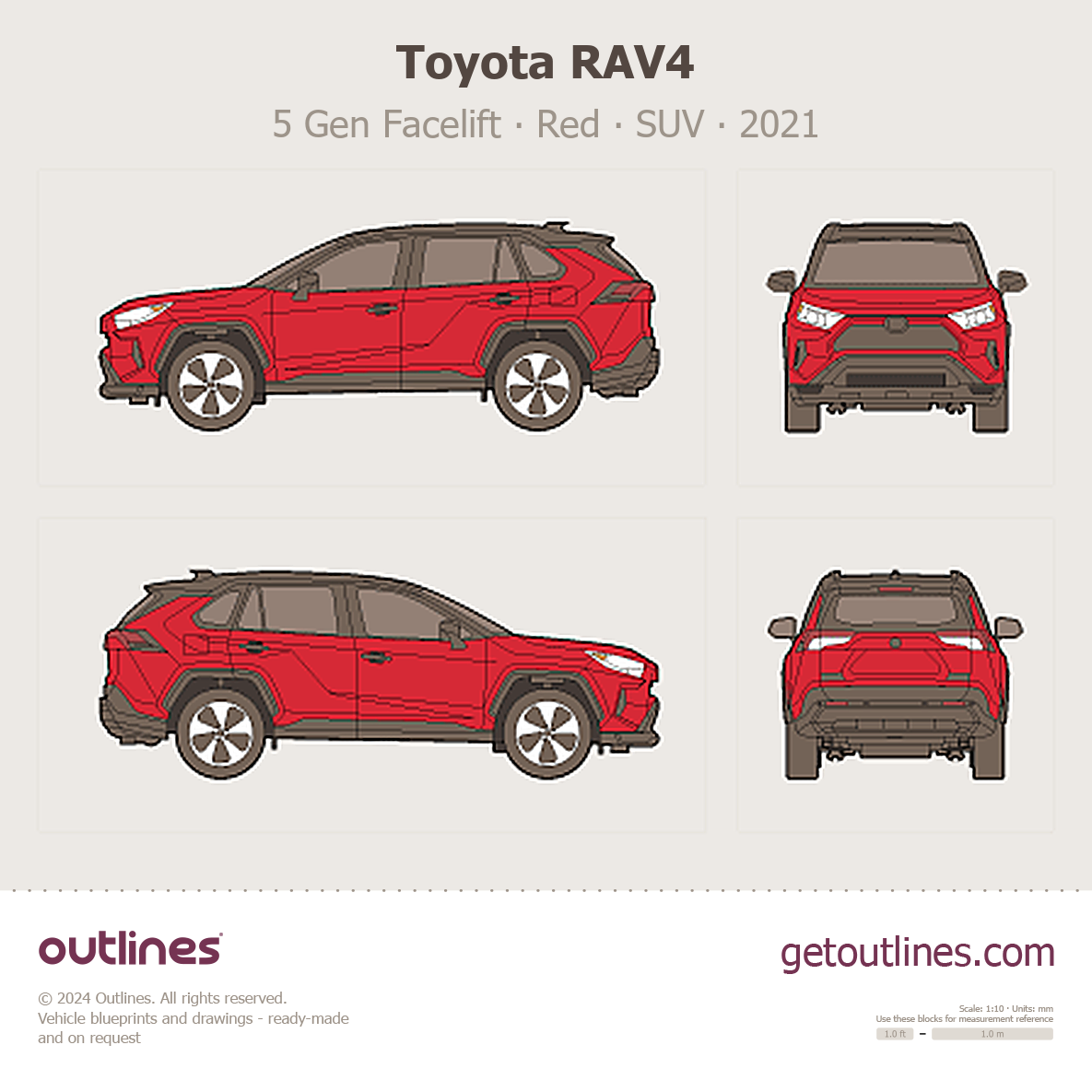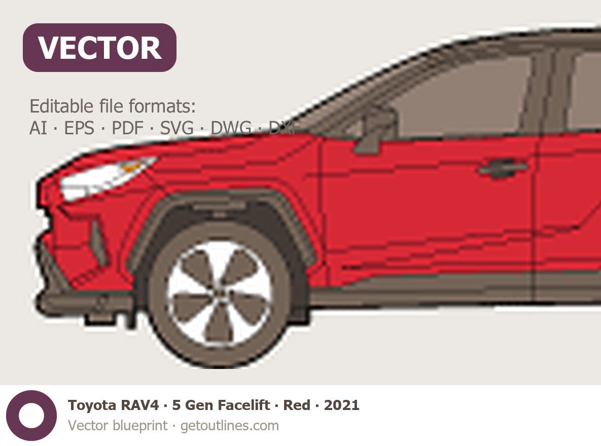 This 2021 Toyota RAV4 5 Gen Facelift Red SUV blueprint helps designers, wrap studios, and 3D artists simplify their workflow and save valuable time for creative work instead of routine tasks.