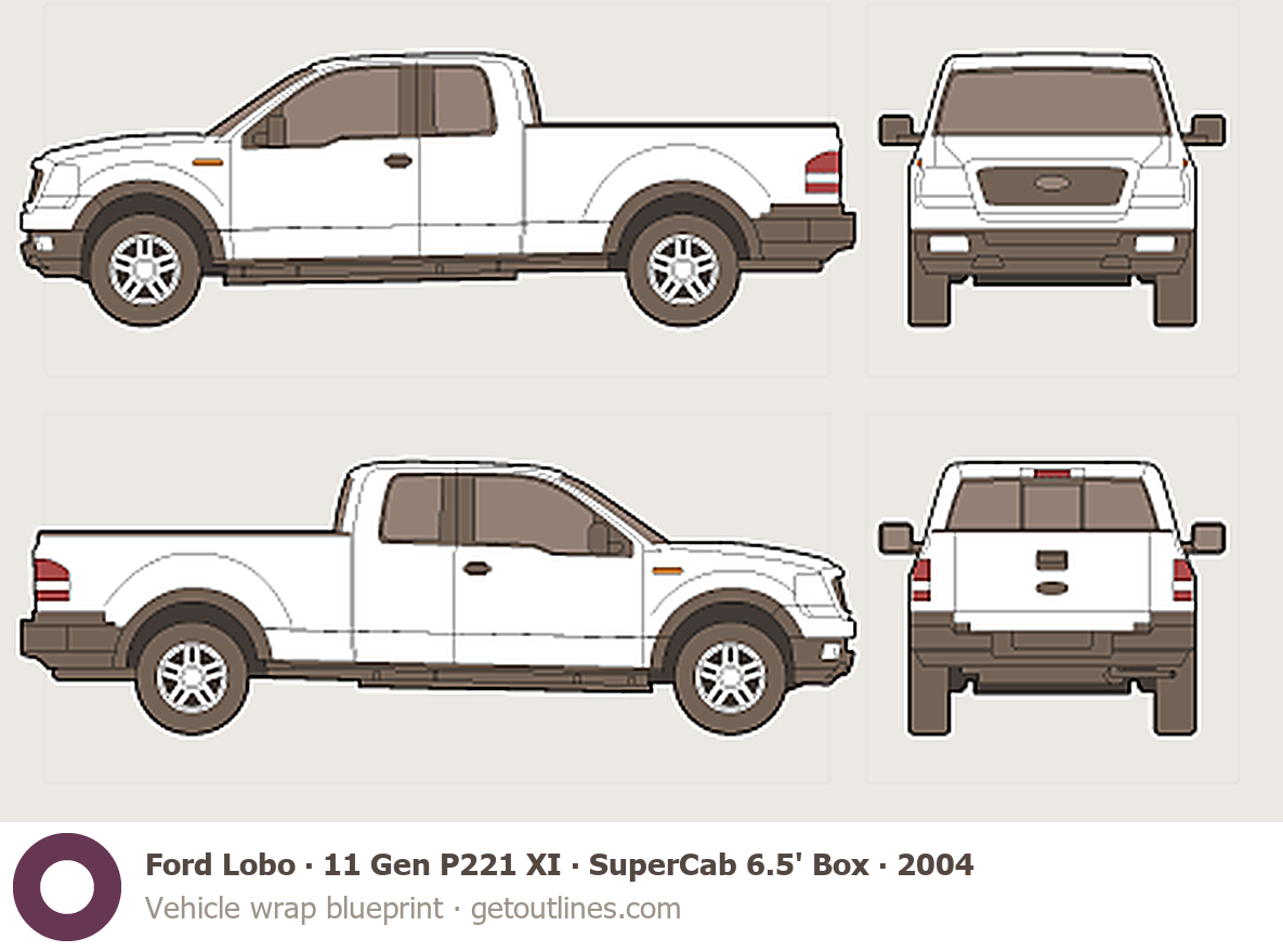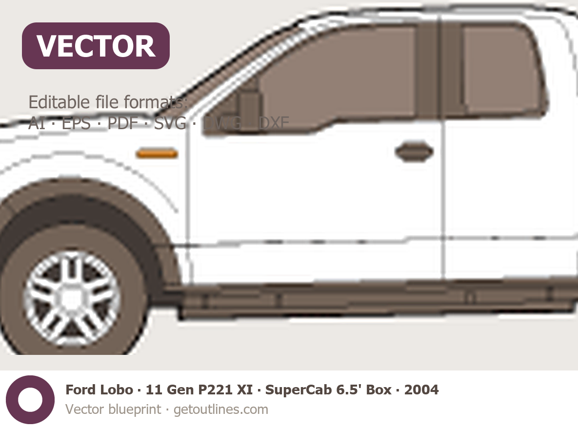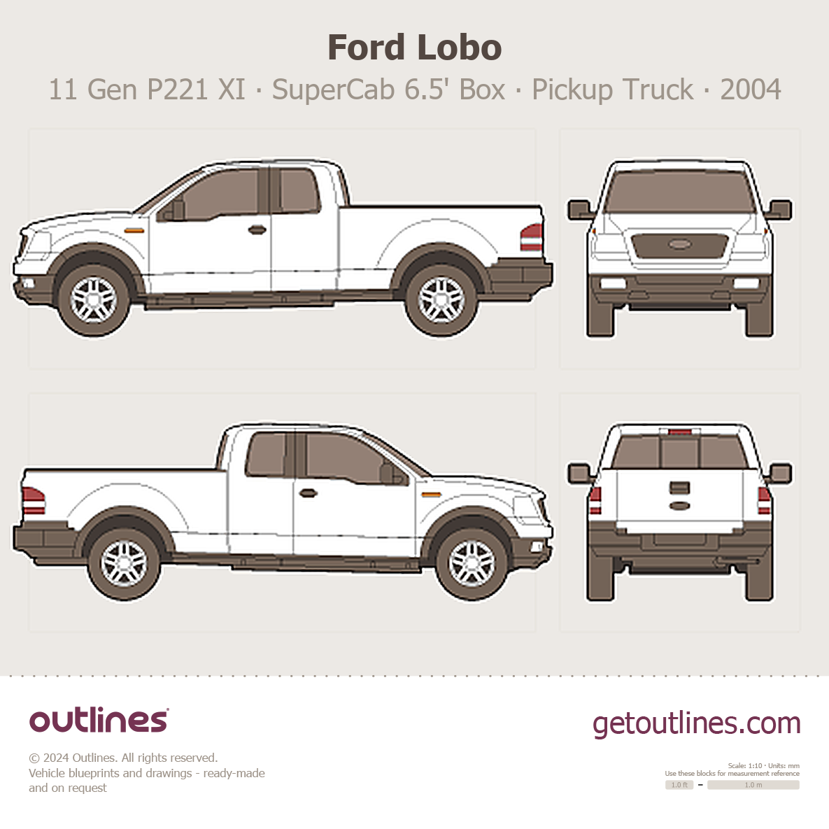 Buy this Ford Lobo 11 Gen P221 XI blueprint and line drawing in high-quality editable vector file formats. Best for 3D and car wrap design.