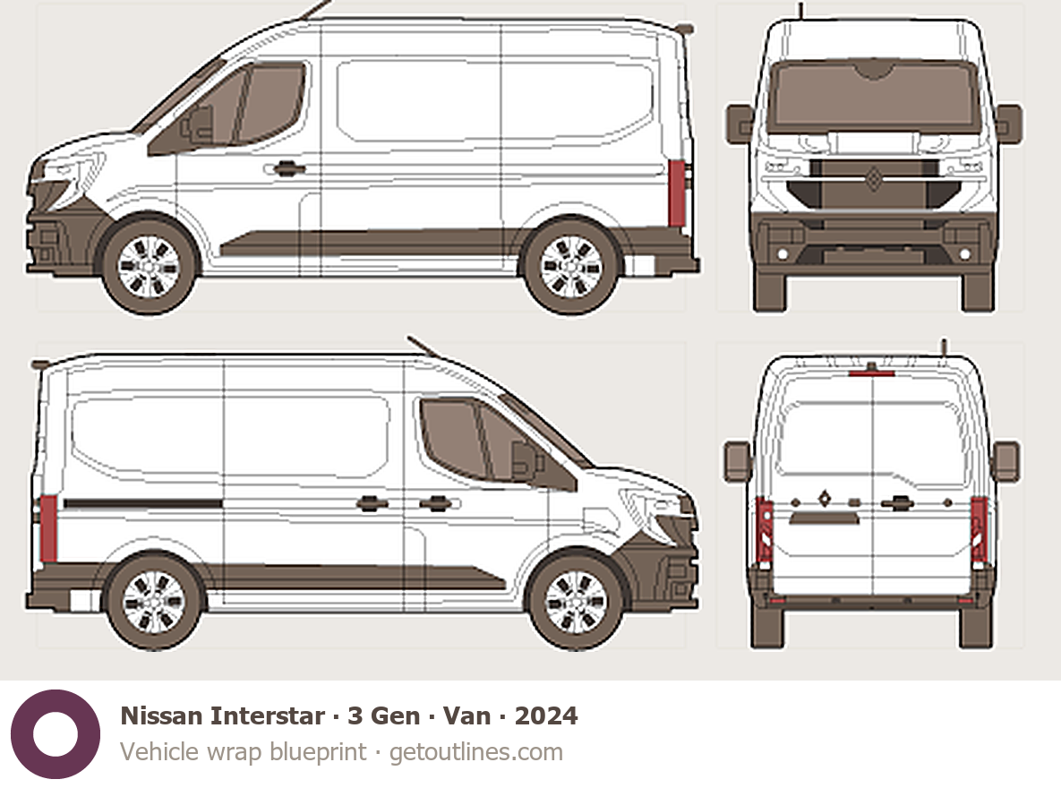 Buy this Nissan Interstar 3 Gen blueprint and line drawing in high-quality editable vector file formats. Best for 3D and car wrap design.