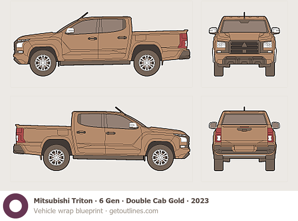 Buy this Mitsubishi Triton 6 Gen blueprint and line drawing in high-quality editable vector file formats. Best for 3D and car wrap design.