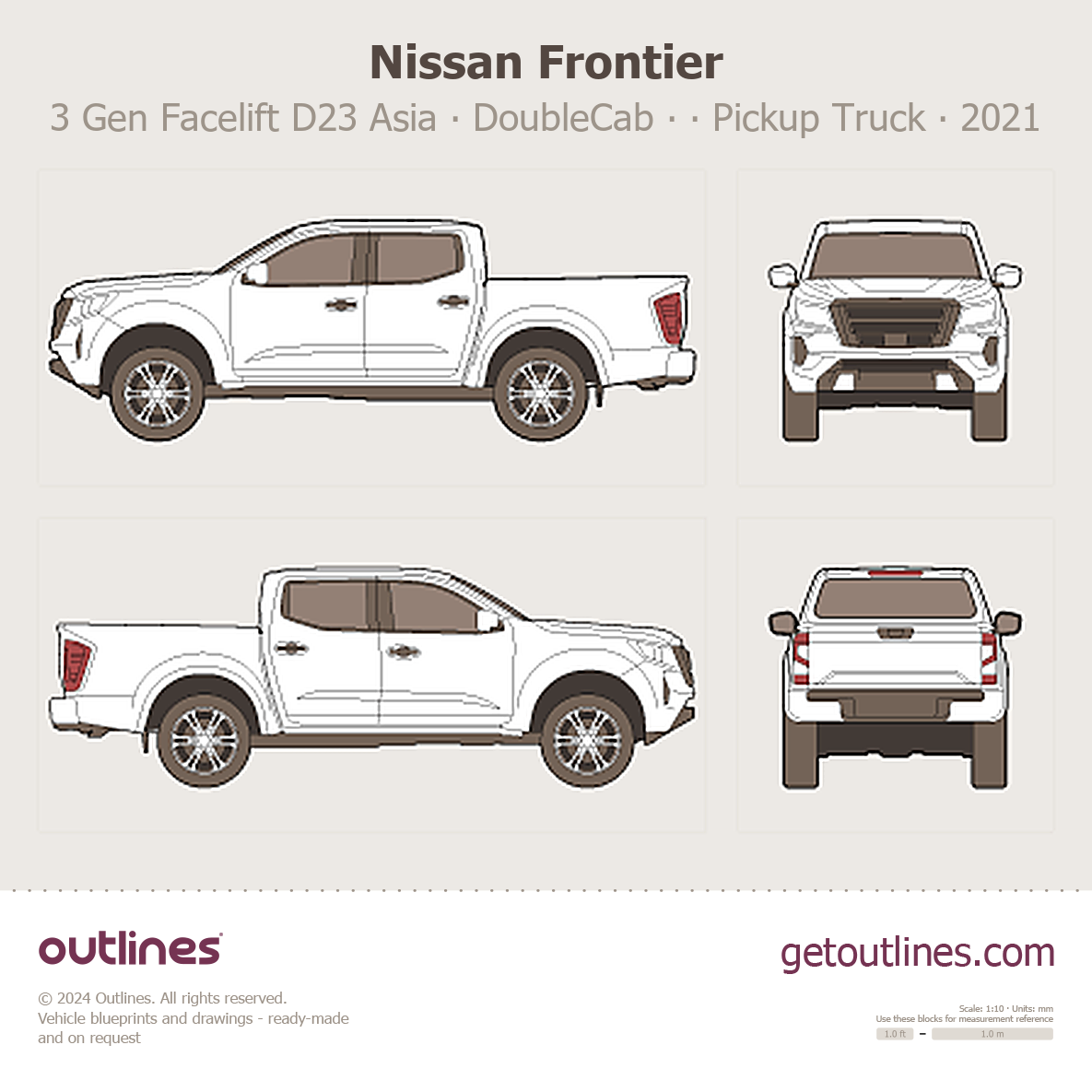 2021 Nissan Frontier 3 Gen Facelift D23 Asia DoubleCab ∙ Crew Cab Pickup Truck blueprint