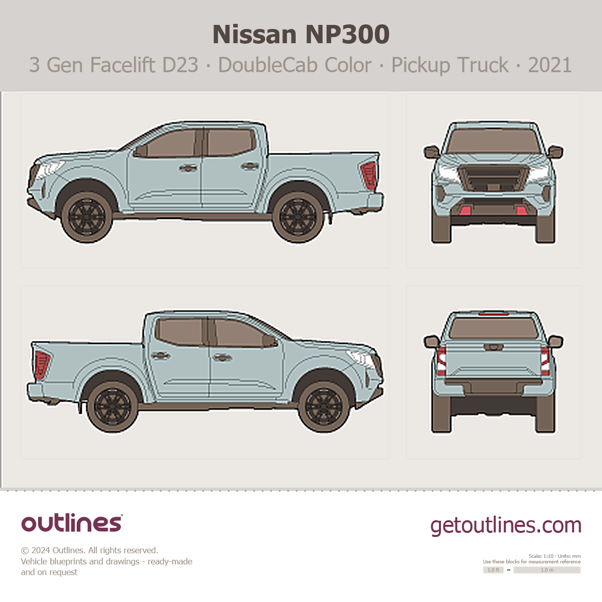 2021 Nissan NP300 3 Gen Facelift D23 DoubleCab Color Pickup Truck blueprint