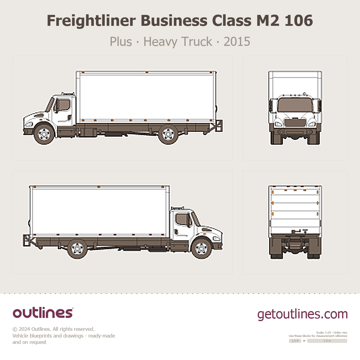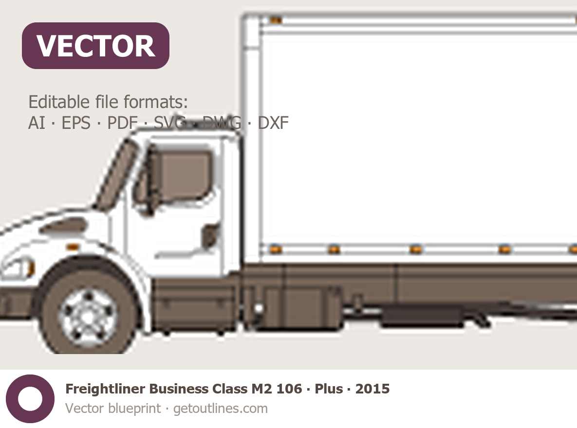 This 2015 Freightliner Business Class M2 106 Plus Heavy Truck blueprint helps designers, wrap studios, and 3D artists simplify their workflow and save valuable time for creative work instead of routine tasks.