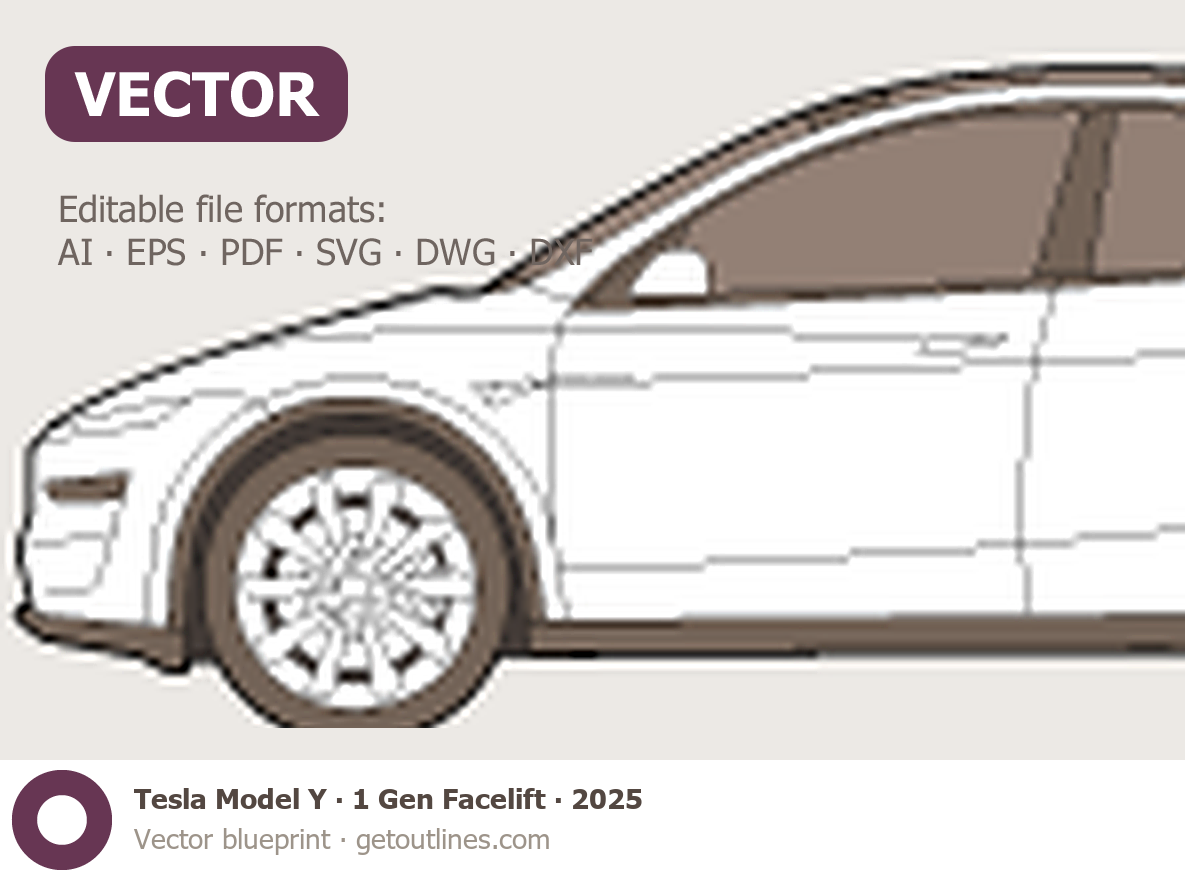 Buy this Tesla Model Y 1 Gen Facelift blueprint and line drawing in high-quality editable vector file formats. Best for 3D and car wrap design.