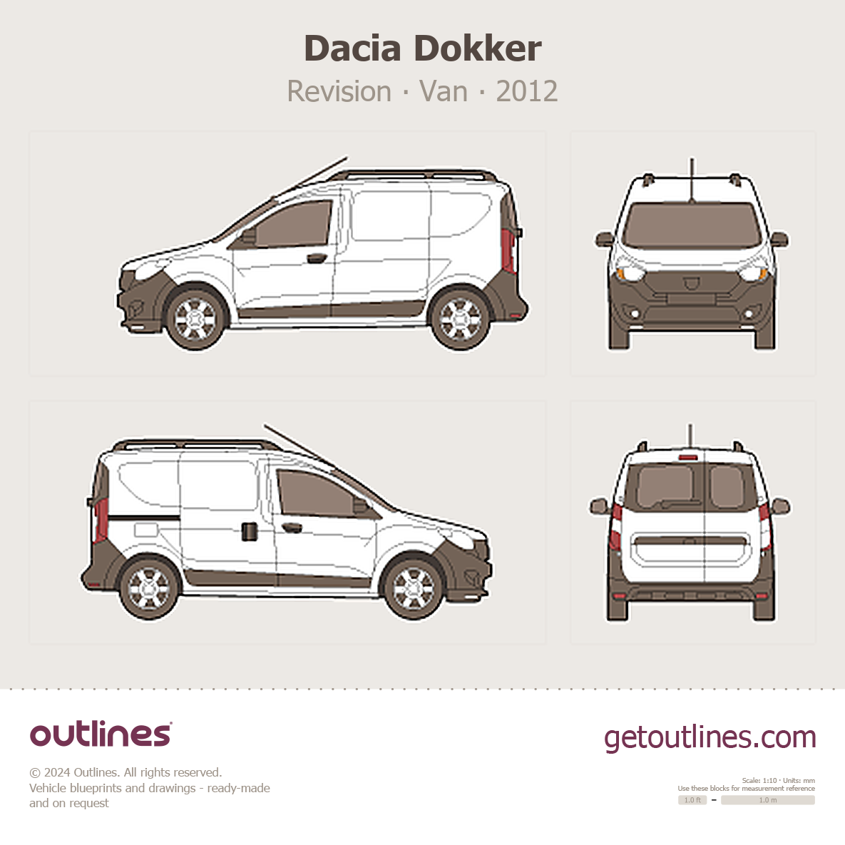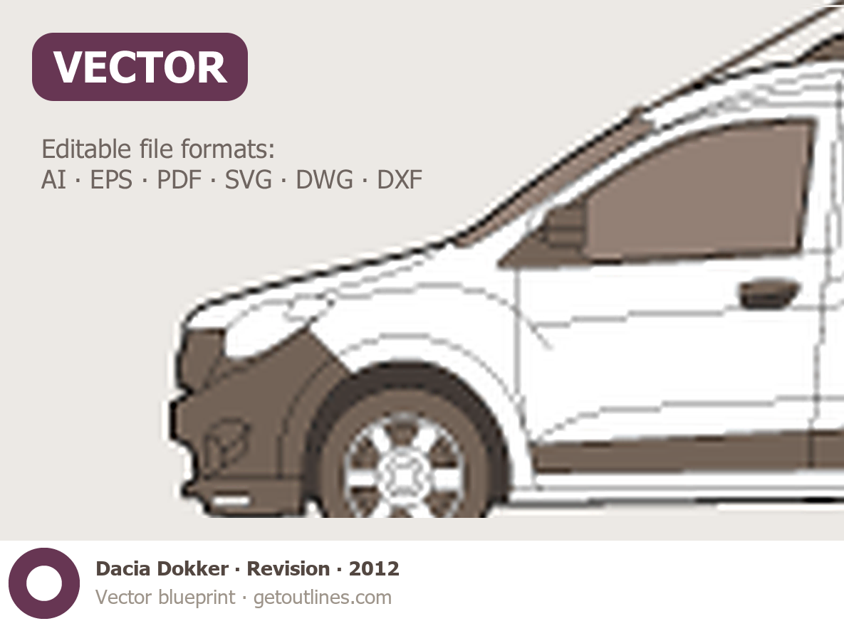 This 2012 Dacia Dokker Revision Van blueprint helps designers, wrap studios, and 3D artists simplify their workflow and save valuable time for creative work instead of routine tasks.