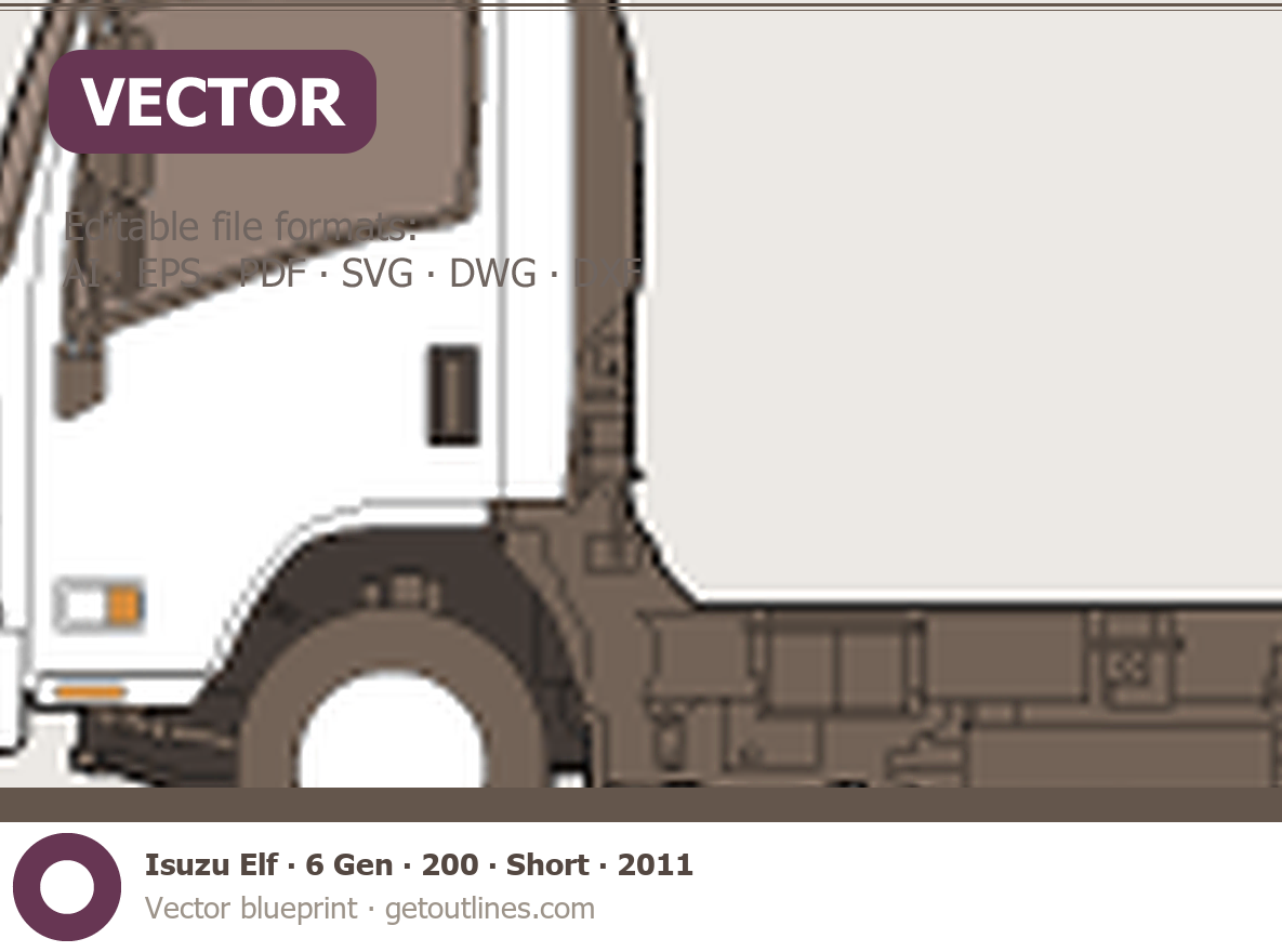 This 2011 Isuzu Elf 6 Gen ∙ 200 ∙ Short Heavy Truck blueprint helps designers, wrap studios, and 3D artists simplify their workflow and save valuable time for creative work instead of routine tasks.
