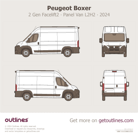 Buy this Peugeot Boxer 2 Gen Facelift2 blueprint and line drawing in high-quality editable vector file formats. Best for 3D and car wrap design.