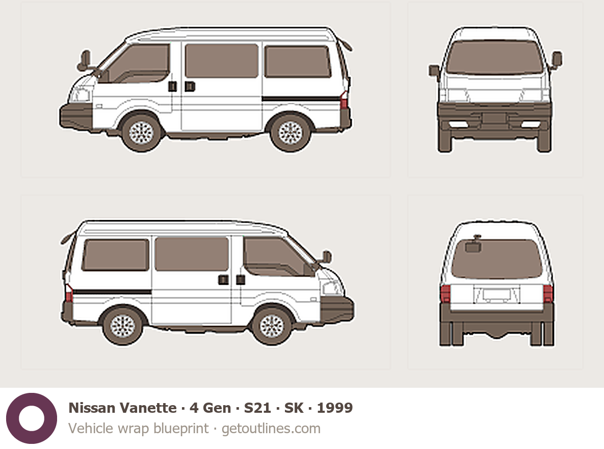 This 1999 Nissan Vanette 4 Gen ∙ S21 ∙ SK Wagon blueprint helps designers, wrap studios, and 3D artists simplify their workflow and save valuable time for creative work instead of routine tasks.
