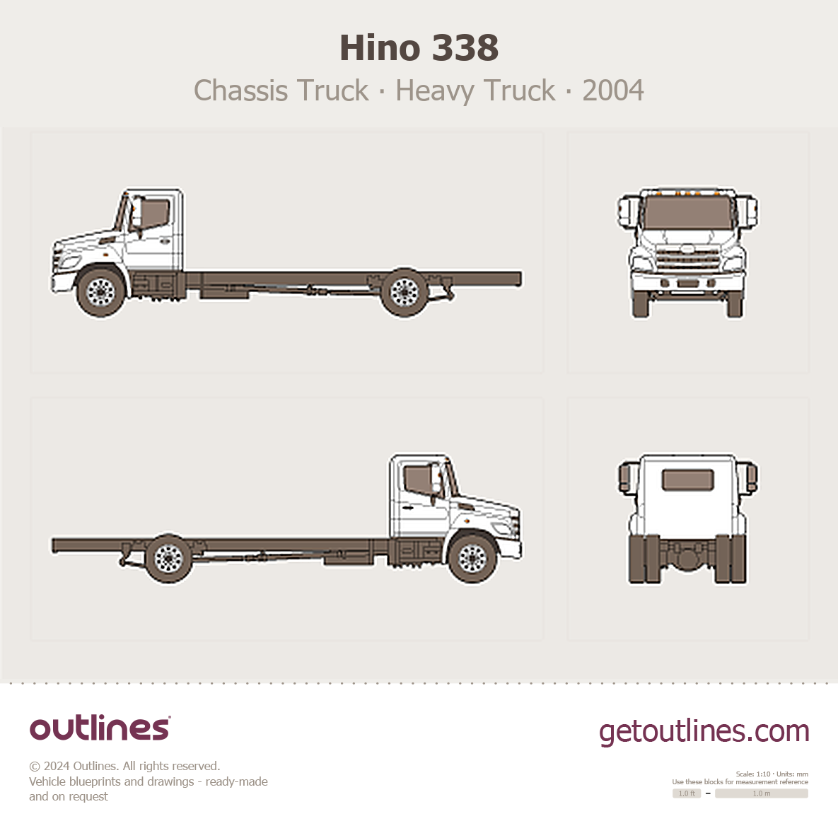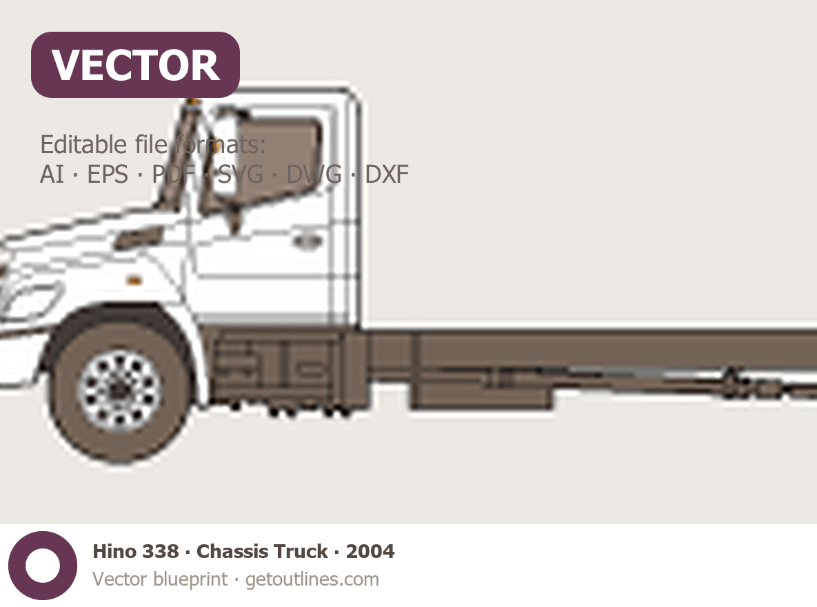 This 2004 Hino 338 Chassis Truck Heavy Truck blueprint helps designers, wrap studios, and 3D artists simplify their workflow and save valuable time for creative work instead of routine tasks.