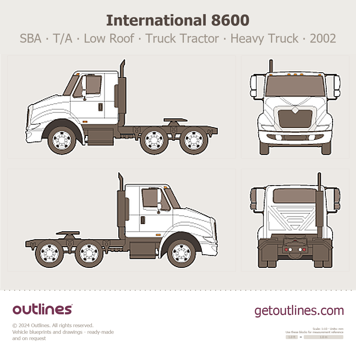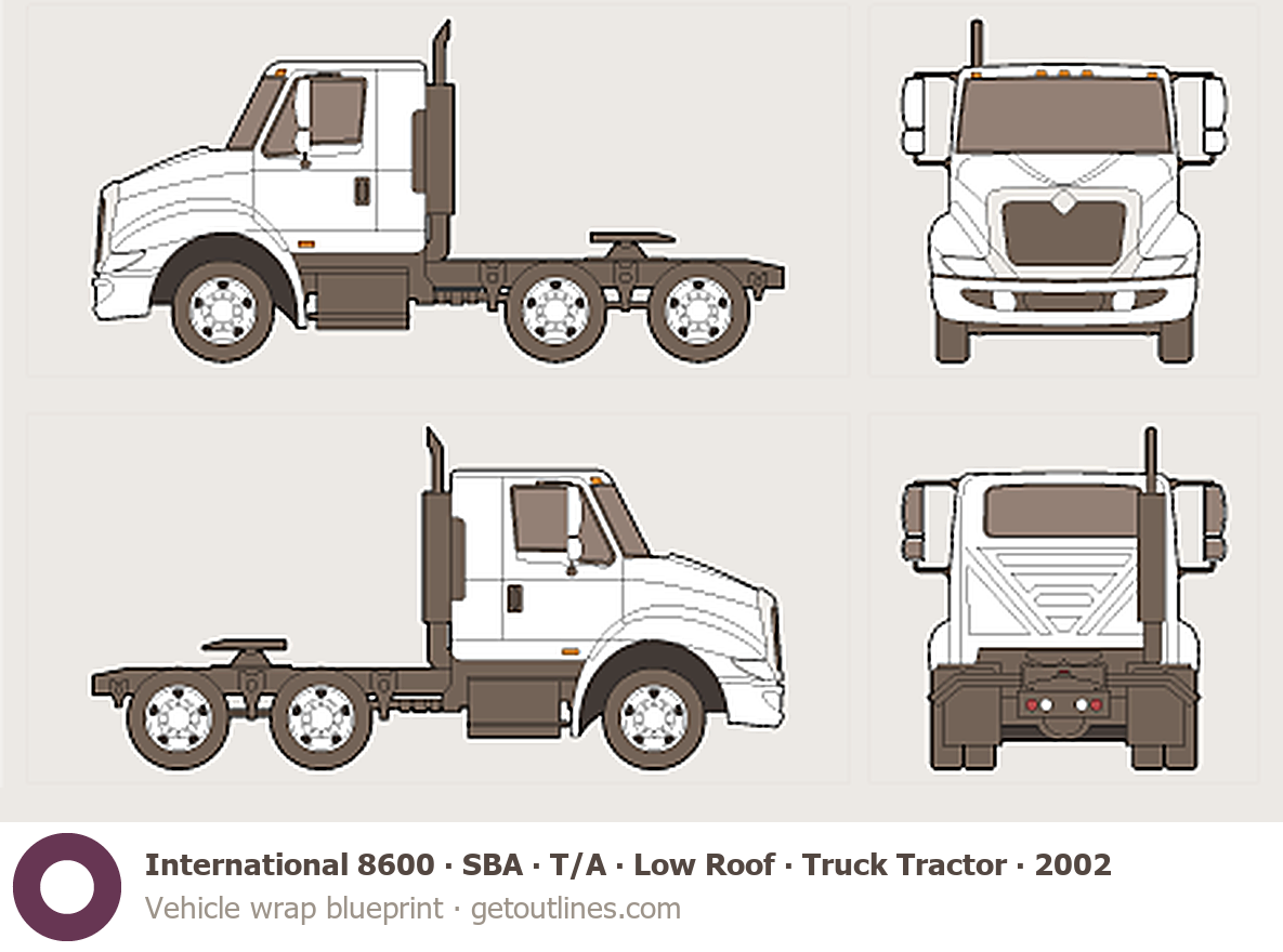 Buy this International 8600 blueprint and line drawing in high-quality editable vector file formats. Best for 3D and car wrap design.
