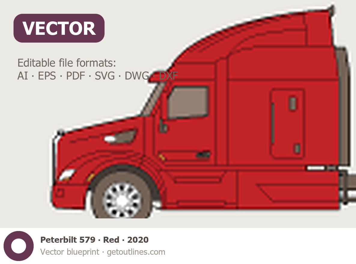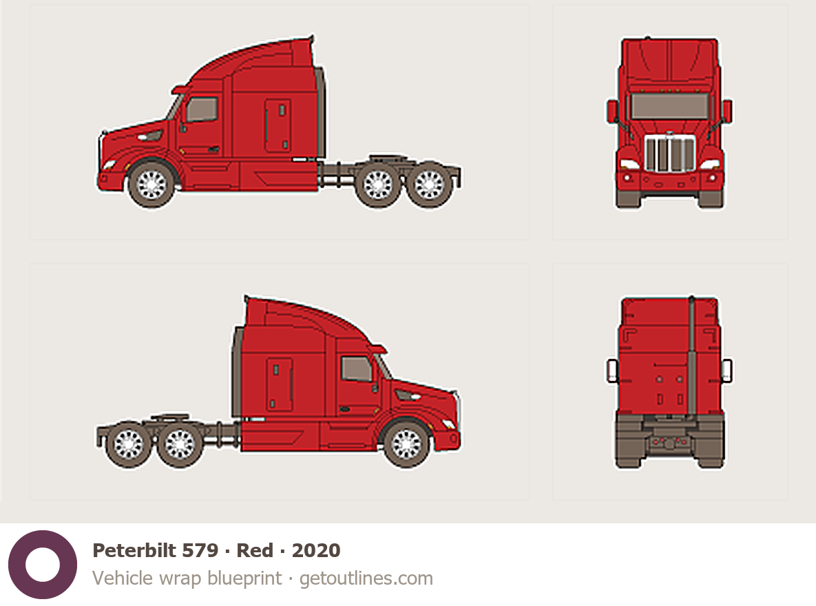 This 2020 Peterbilt 579 Red Heavy Truck blueprint helps designers, wrap studios, and 3D artists simplify their workflow and save valuable time for creative work instead of routine tasks.