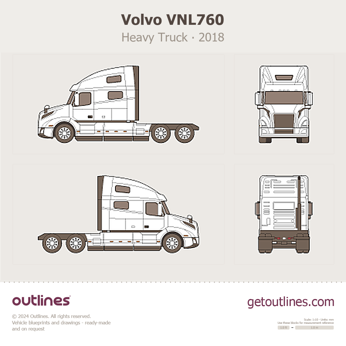 This is a blueprint of the VNL760, produced by carmaker Volvo in 2018 - 2025. It features a Heavy Truck body design and is classified as a Commercial vehicle.